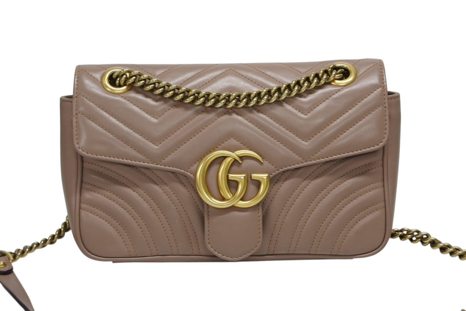 ヴィンテージ感のある上質なキルティングレザーと、アイコニックなダブルGのハードウェアを特徴とする、GGマーモントシリーズのバッグです。