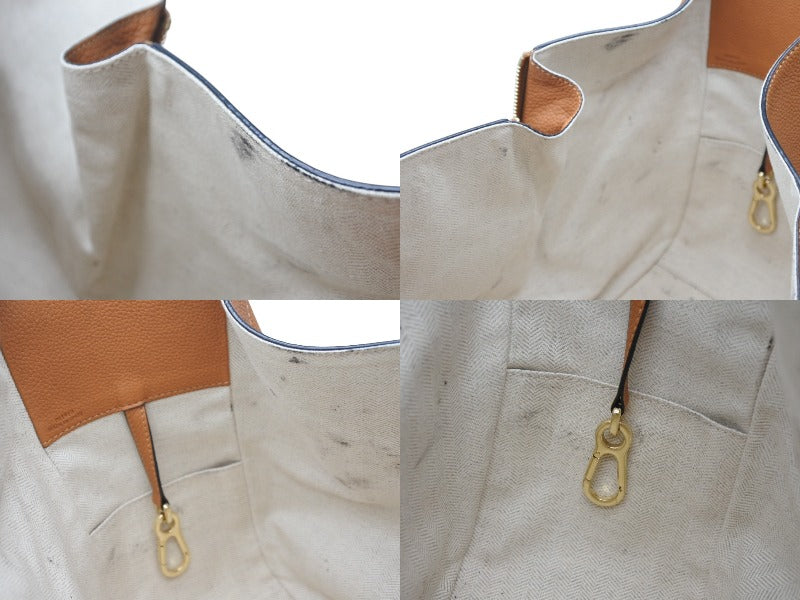 マチ、外側ファスナーポケット、ショルダーにスレあり。内側全体的に汚れあり。金具傷あり。