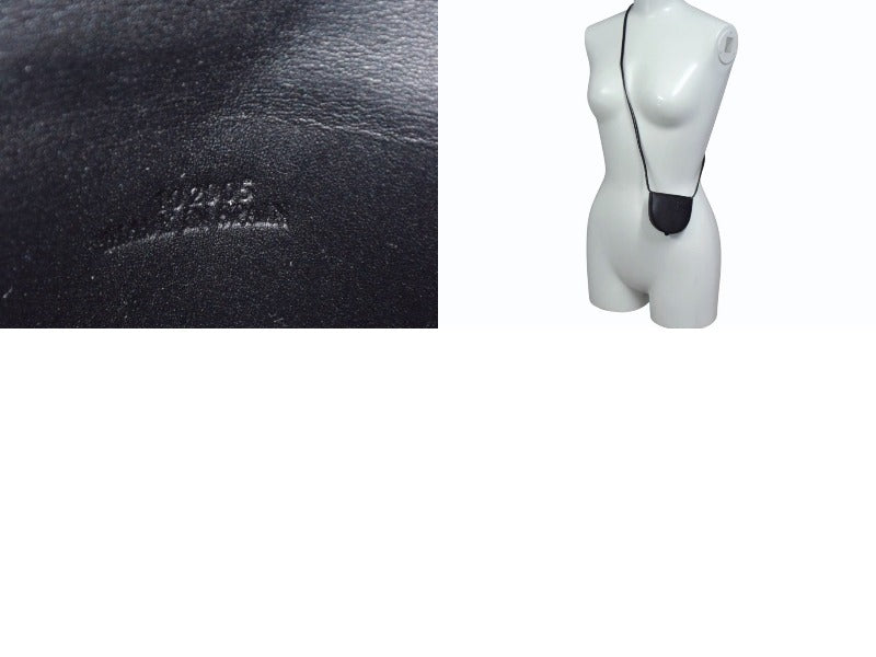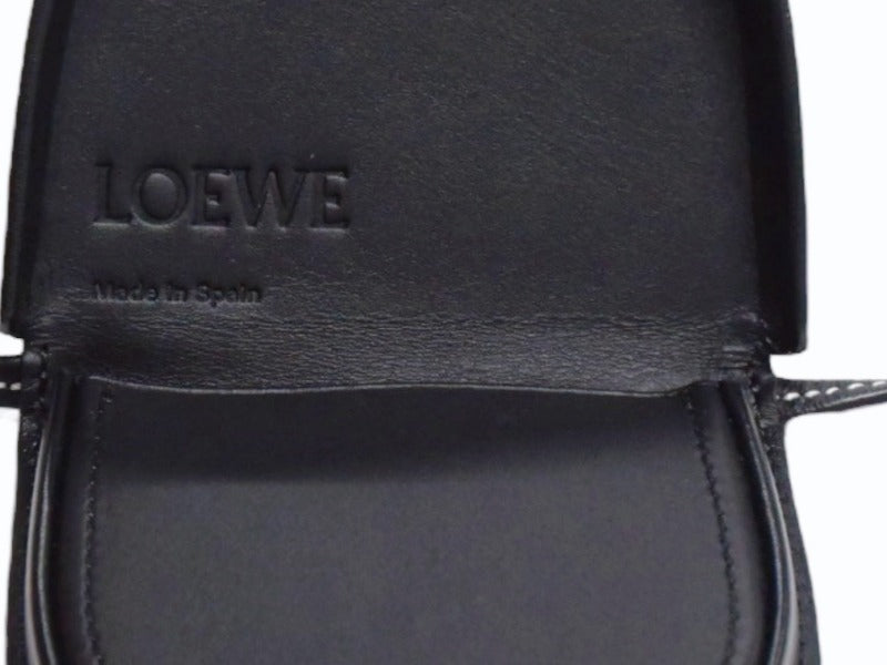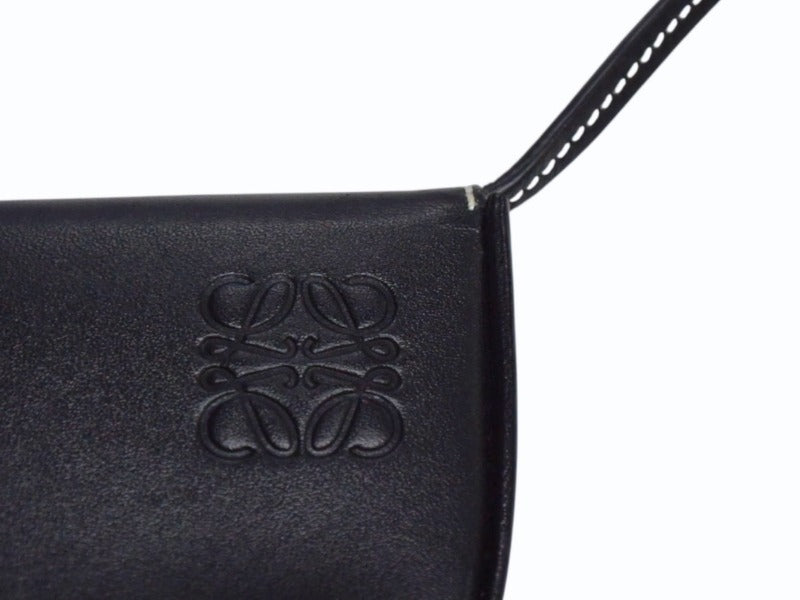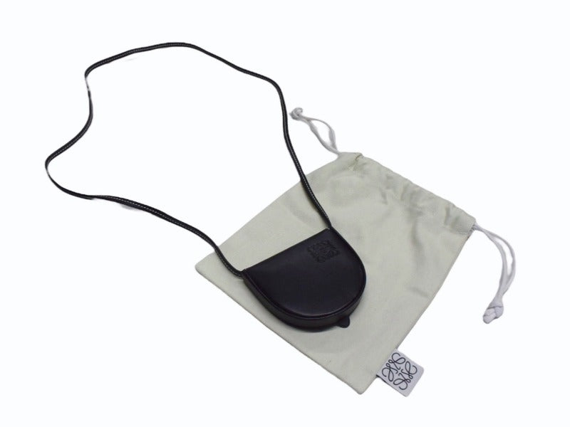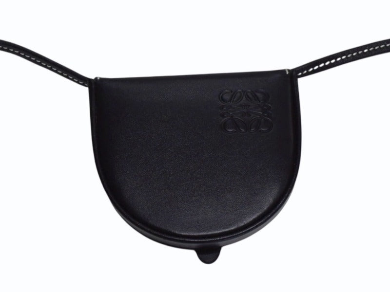 極美品 LOEWE ロエベ ヒールポーチ ミニ ショルダーストラップ付きコインケース 小物 スペイン製 レザー ブラック 中古 4b003421