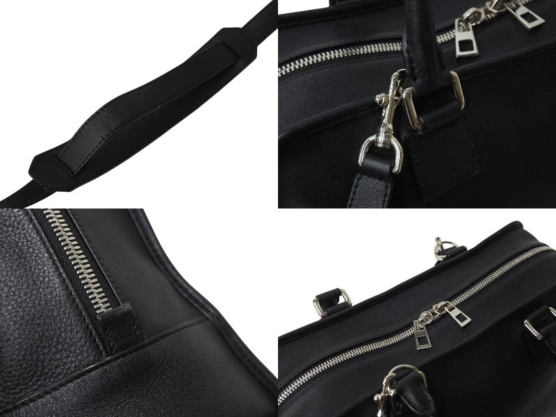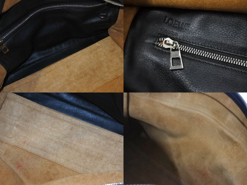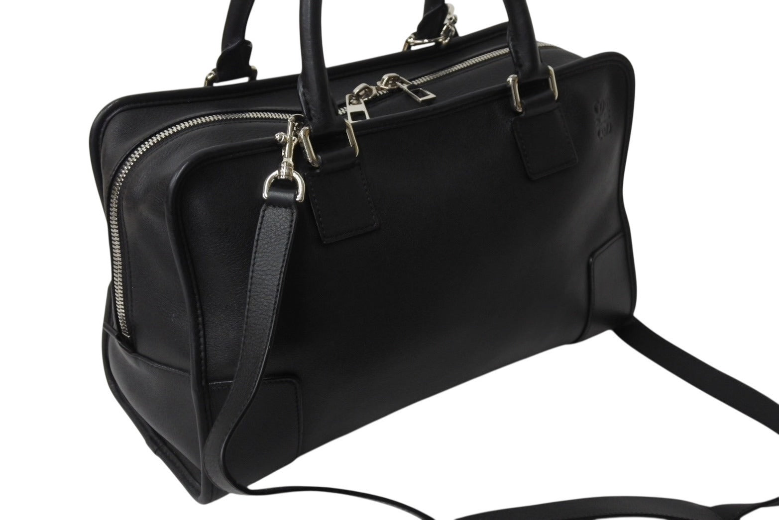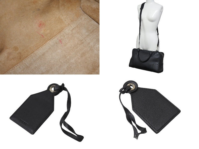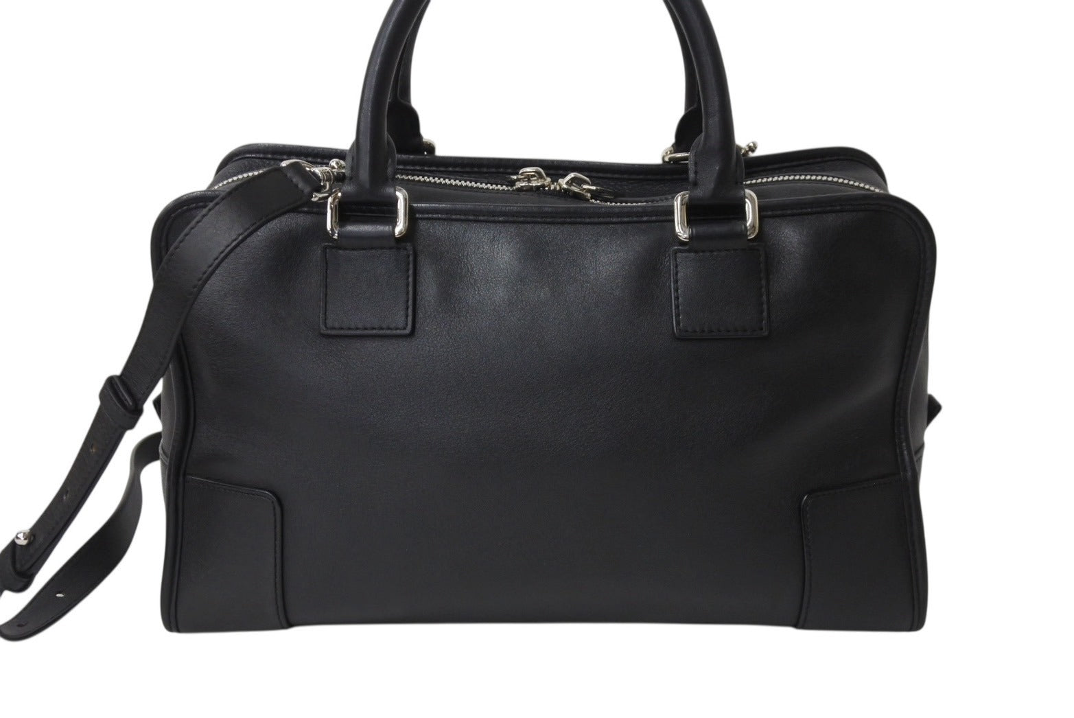 LOEWE ロエベ アマソナ36 ハンドバッグ 2WAY アナグラムロゴ エンボス加工 レザー ブラック シルバー金具 美品 中古 4b003901