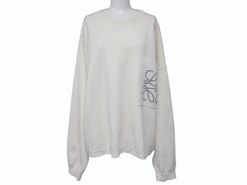 胸元にアナグラムのインターシャ編みパッチポケットがあしらわれています。