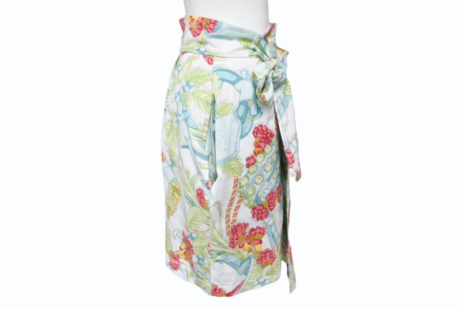 LOEWE ロエベ ヴィンテージ ラップスカート 総柄 スカーフ柄 アナグラム コットン マルチカラー サイズM 美品 中古 4b006179