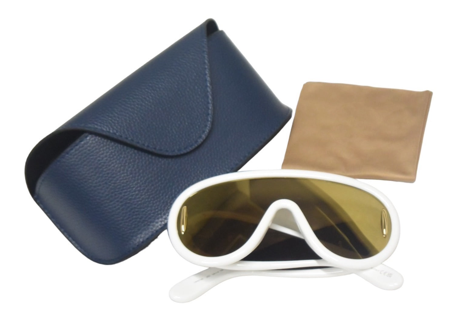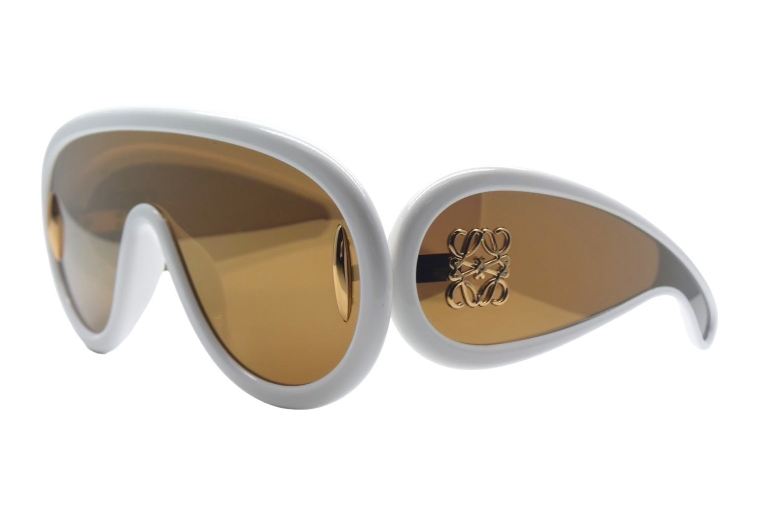 新品未使用 LOEWE ロエベ サングラス アイウェア サイズ140▫︎0 145 イタリア製 ゴールド金具 ホワイト 中古 4c067428