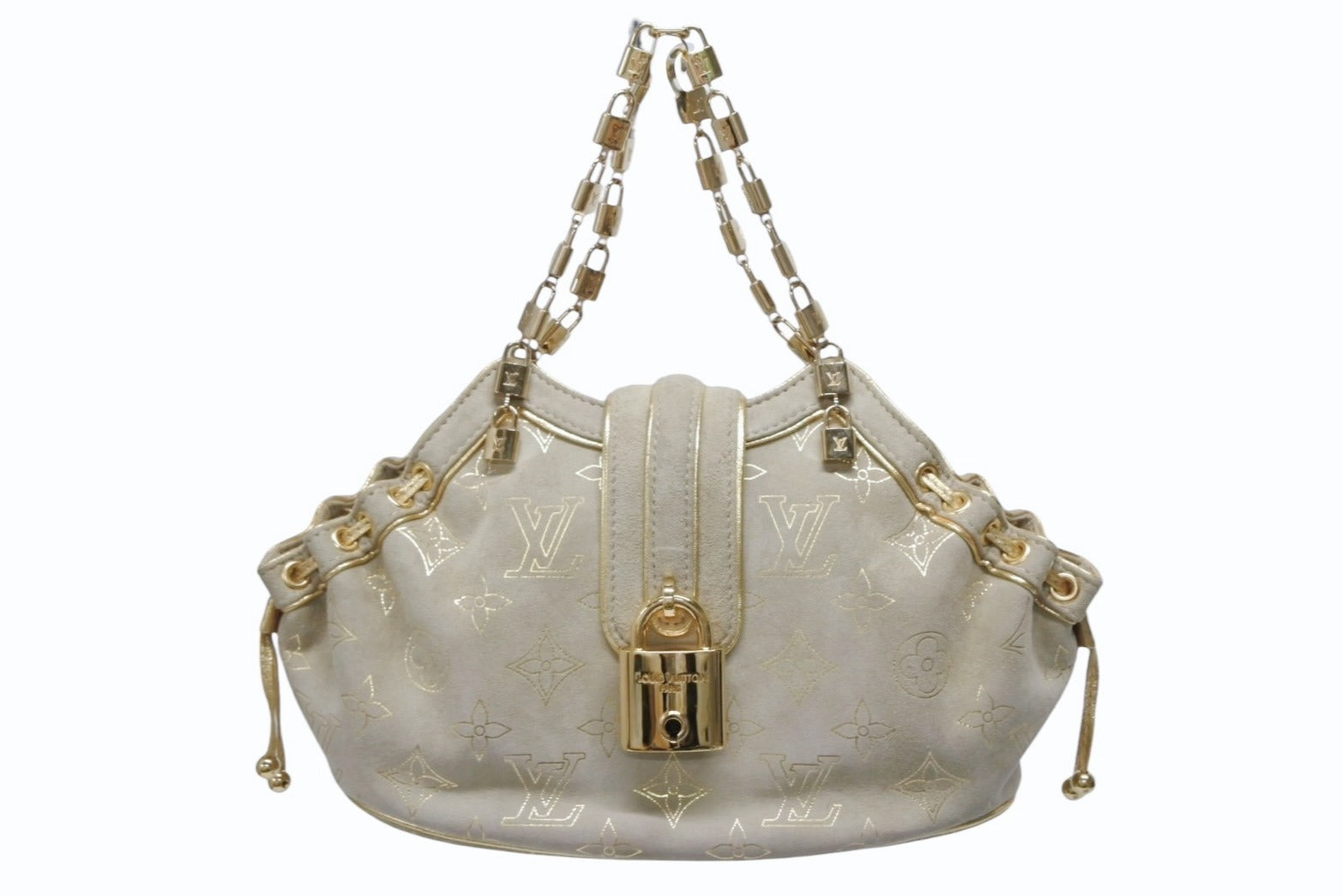 表面に少々のスレあり。底面、背面に少々シミ、汚れあり。金具パーツにスレ、小傷あり。その他使用感少なく極美品です。
