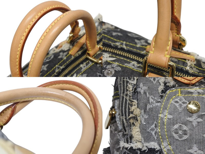 極美品 LOUIS VUITTON ルイヴィトン スピーディ30 ボストンバッグ パッチワーク M95381 モノグラムデニム ブラック 中古 4b009975
