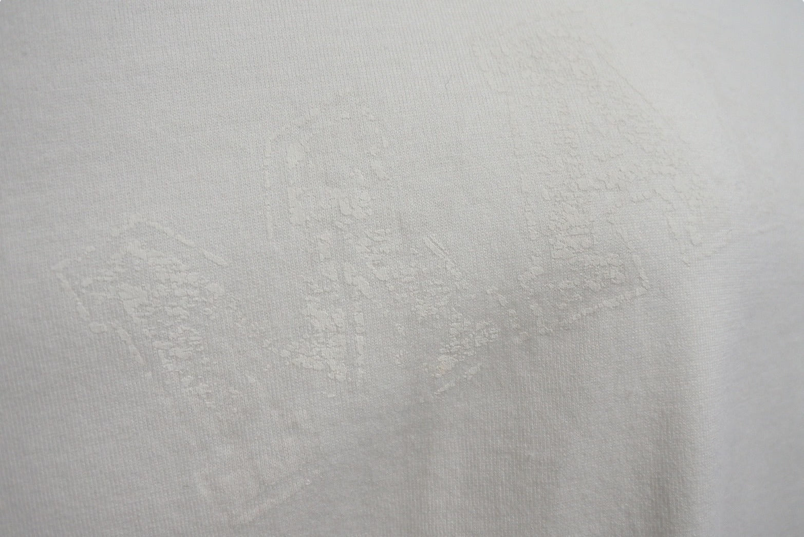 フロント下にシミのような跡があります。プリント剥がれありですが、他に目立った傷や使用感のない美品です。