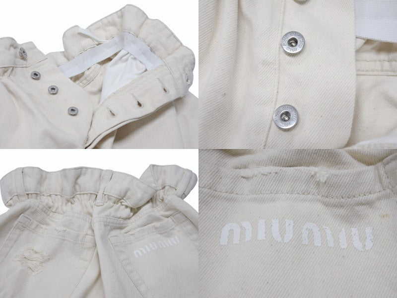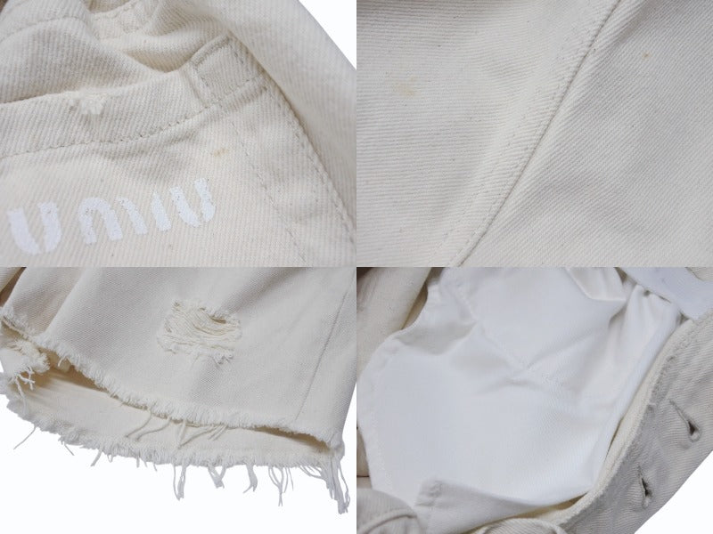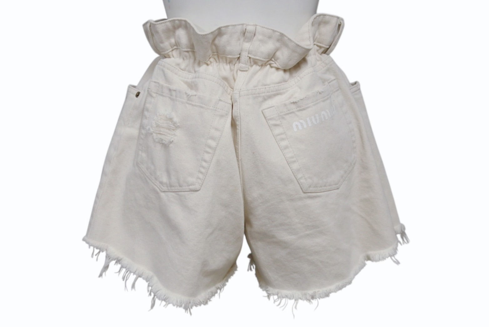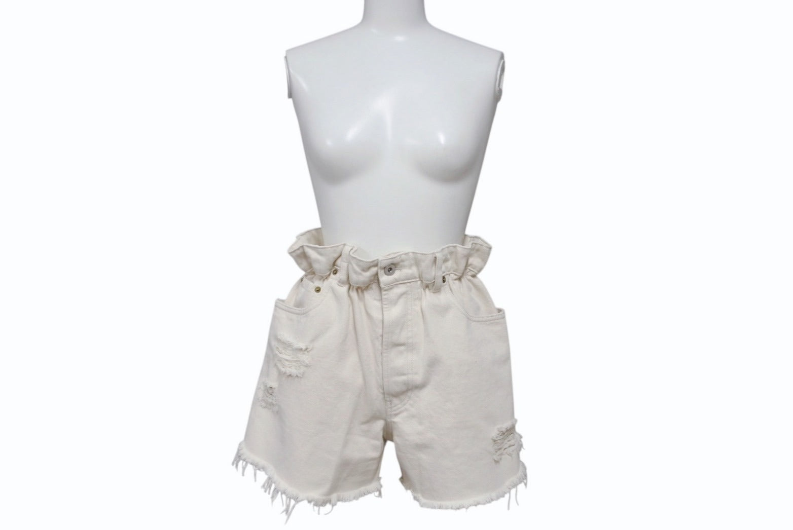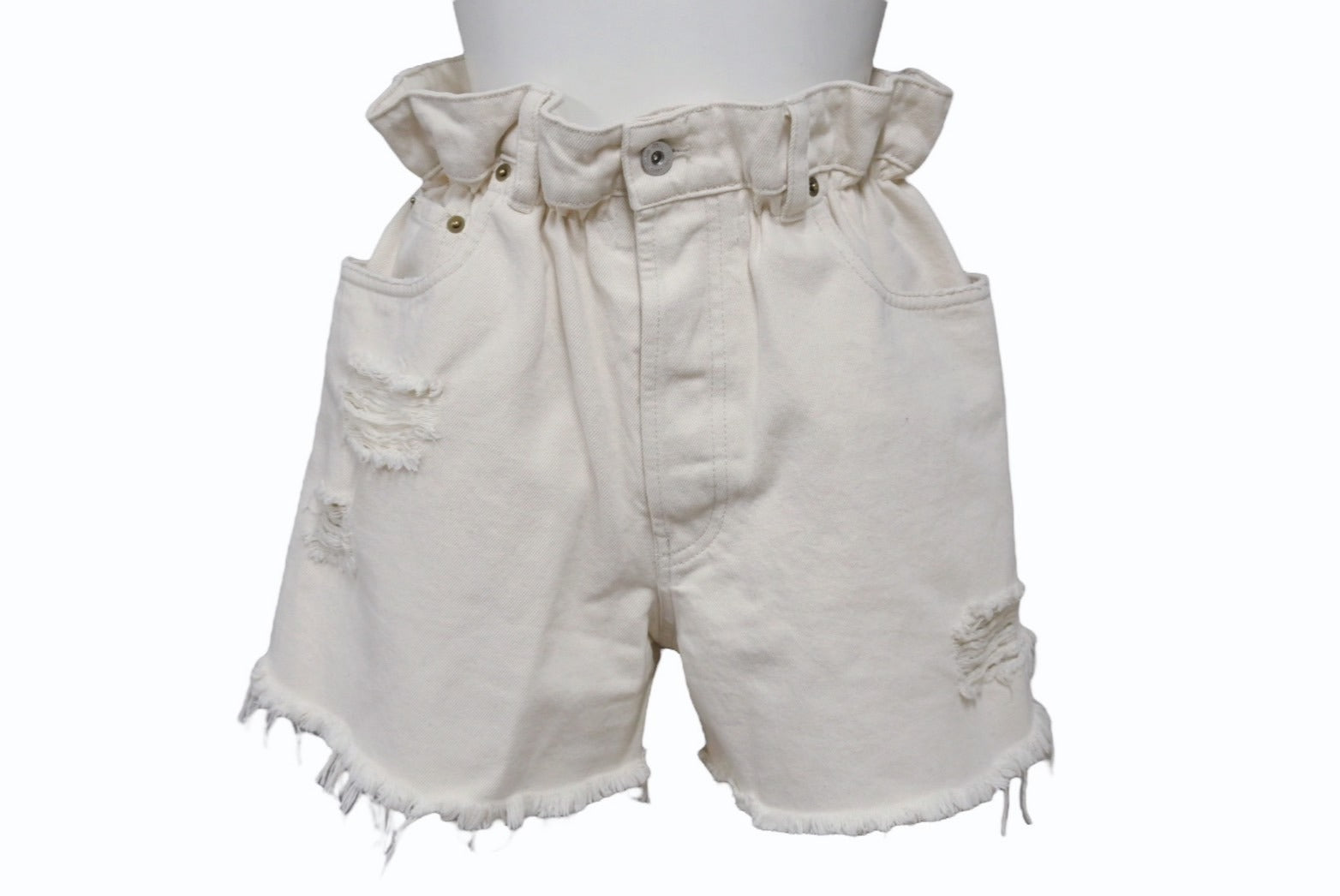 ロゴプリントや切りっぱなしデザインなどがアクセントになったデニム素材のショートパンツです。