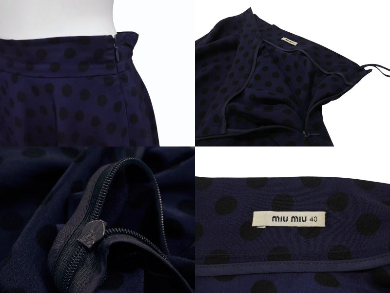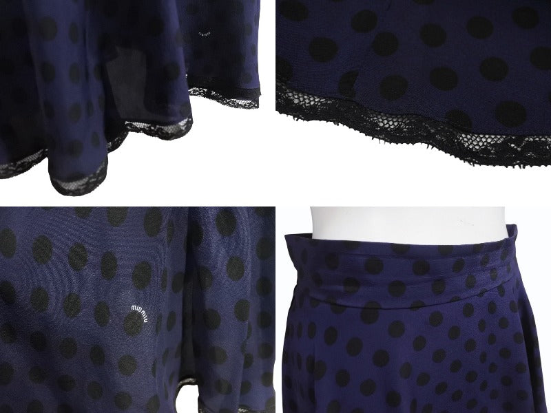 MIU MIU 13SS ミュウミュウ フレアスカート レース ミニ丈 ドット柄 MG617 Z06KA ネイビー ブラック サイズ40 美品 中古 4b004769