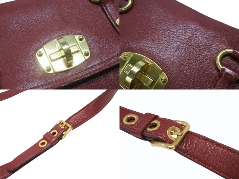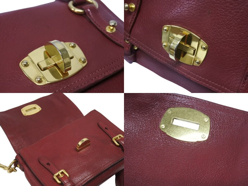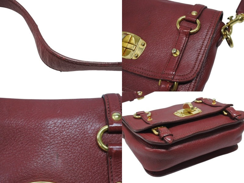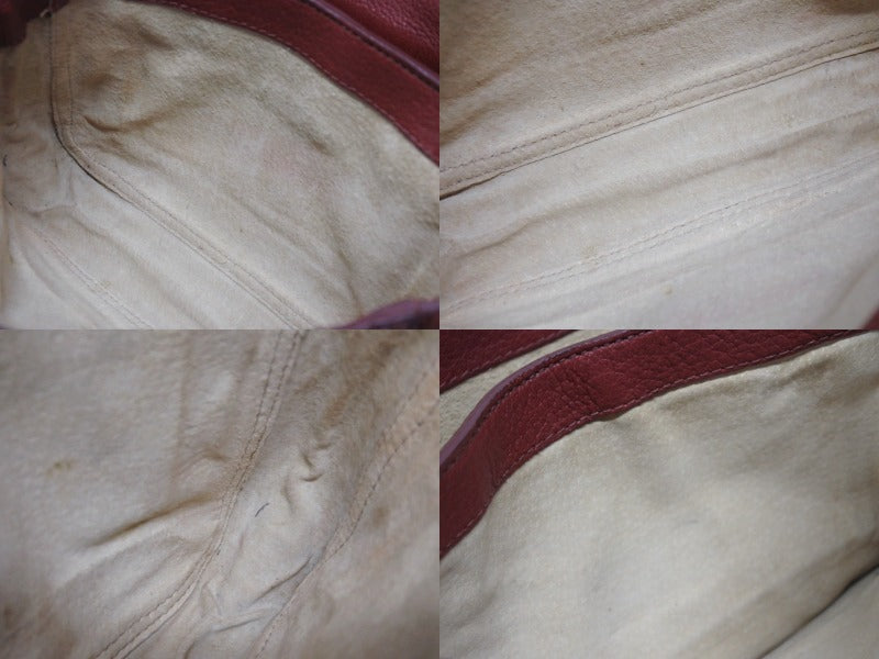 表面にスレ、シワ、汚れあり。金具にスレ、小傷あり。内側にスレ、シミ、汚れ、押し跡あり。ショルダーストラップにスレ、コバスレ、コバ割れ、歪み、シワあり。その他使用感の少ない状態です。