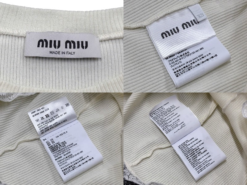 アイボリーのリブコットン生地で高級感が演出でき袖先と裾のレーストリムが女性らしさを際立たせてくれるアイテムです。