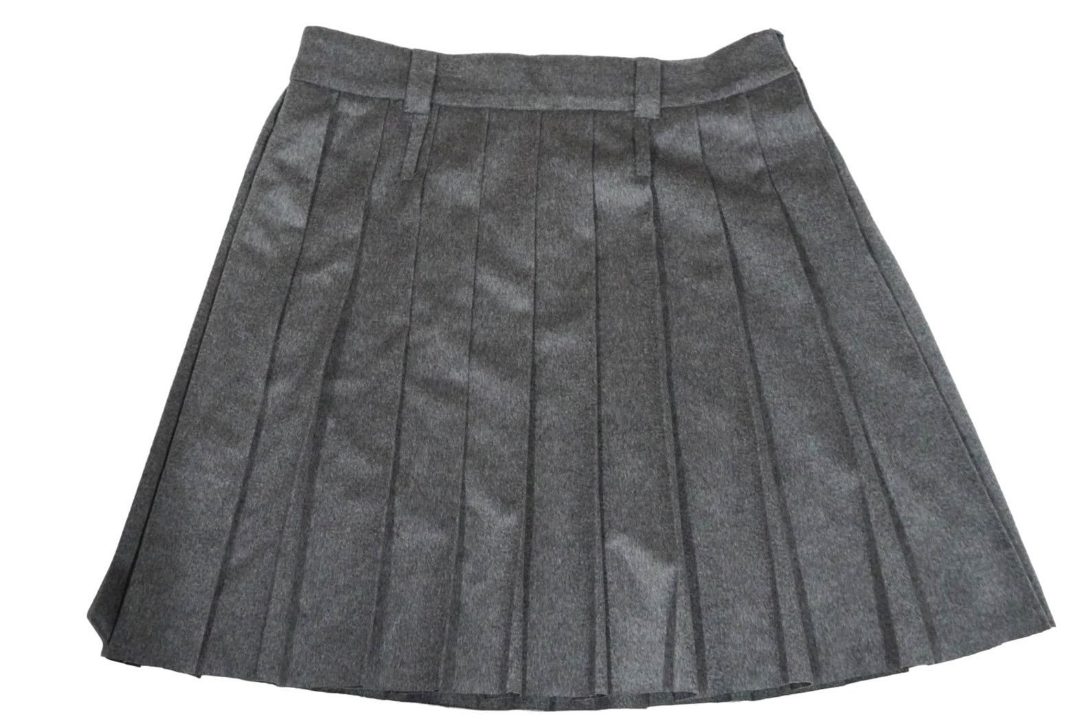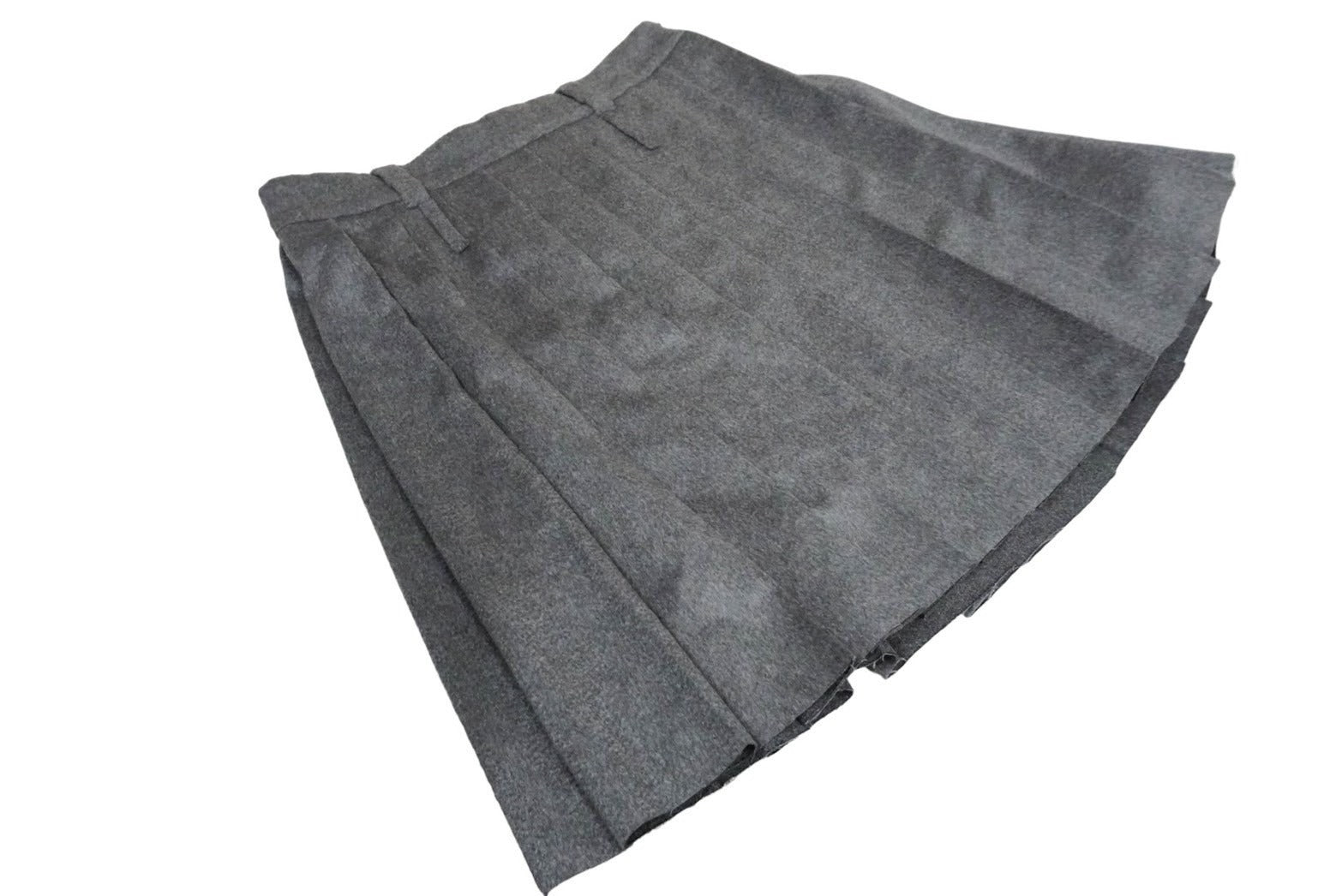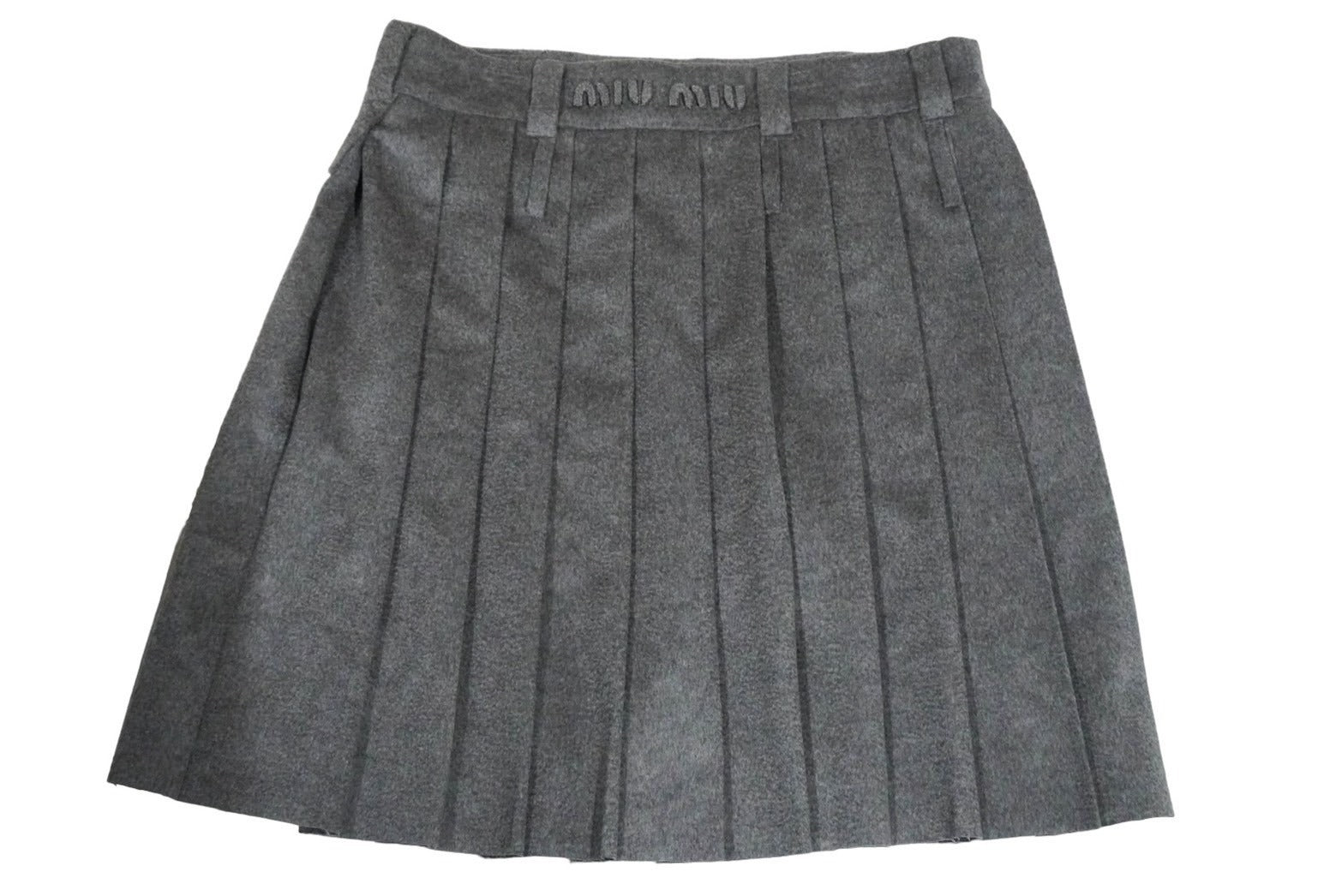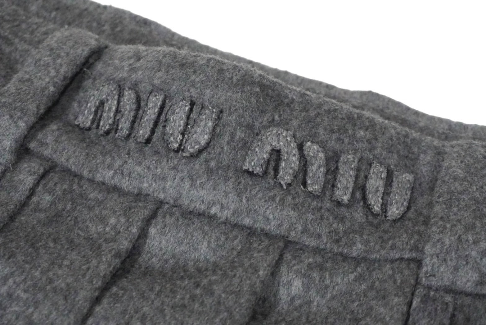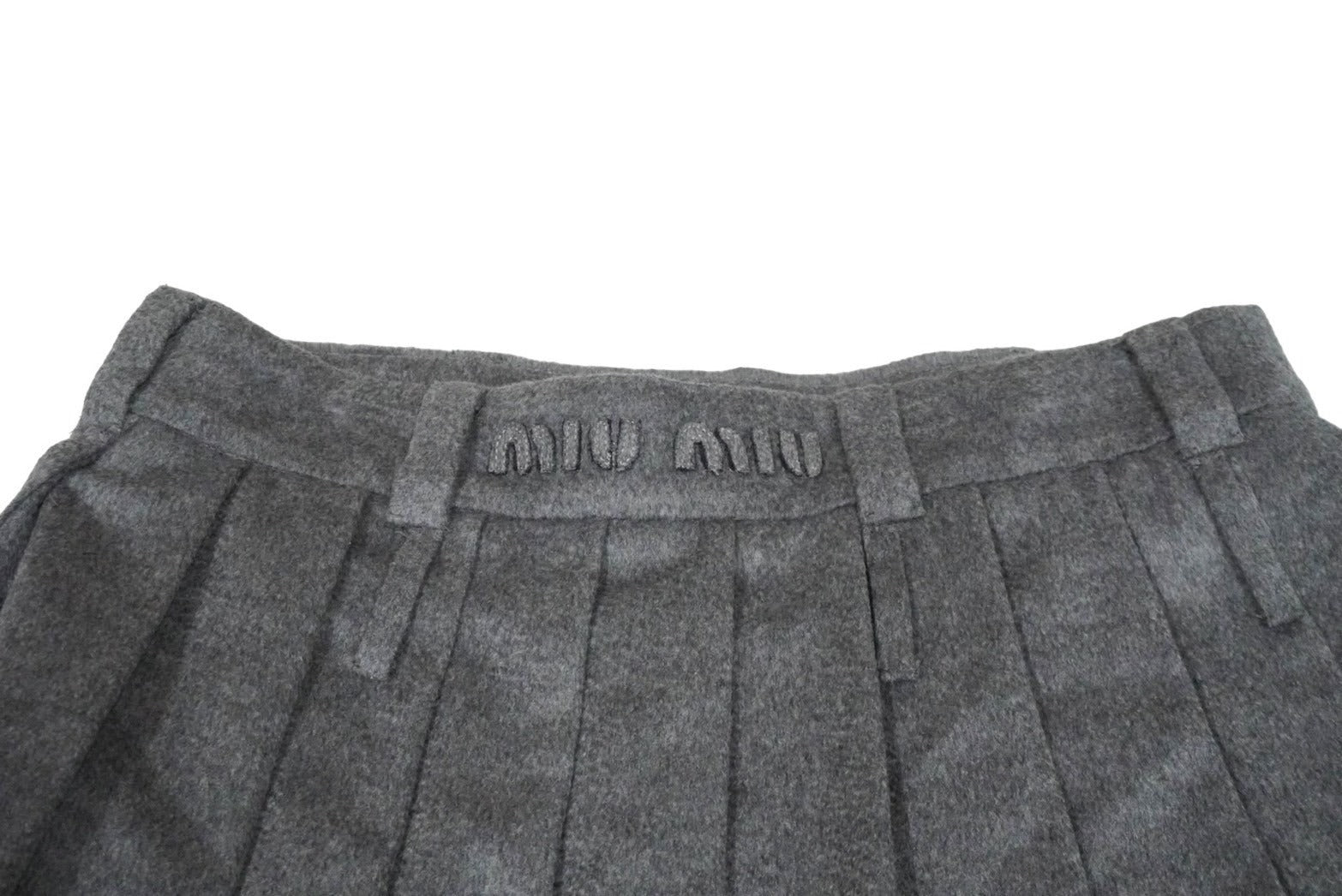 新品未使用 MIUMIU ミュウミュウ プリーツスカート MG1856113K ダブルベルトループ ウール グレー サイズ42 中古 59198