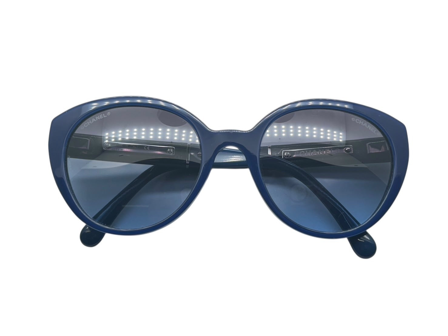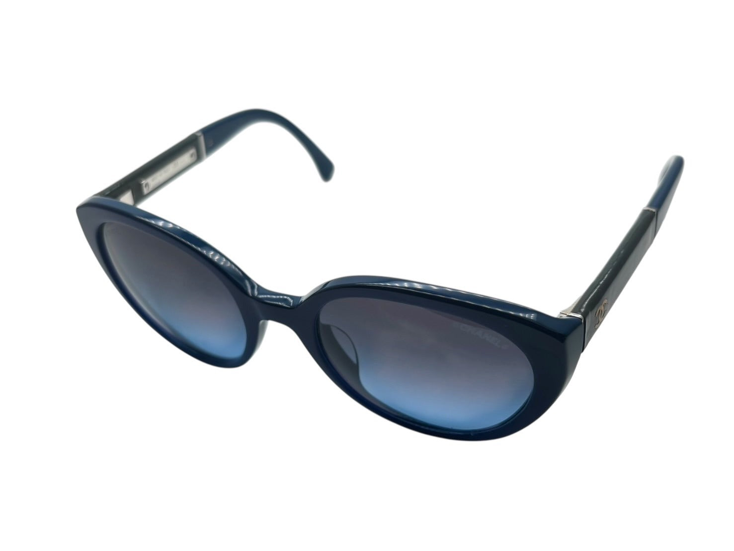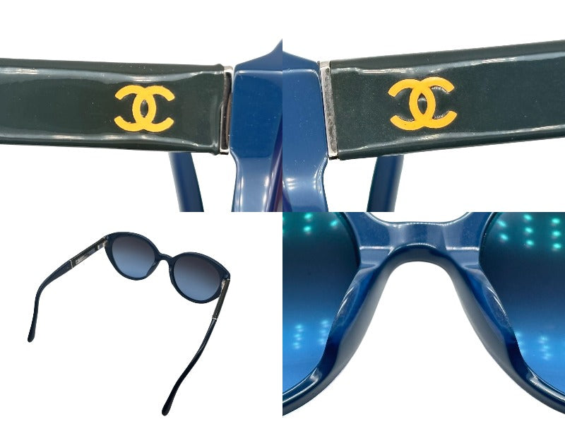 CHANEL シャネル ウェリントン サングラス アイウェア ココマーク エナメル プラスチック ブルー グリーン 美品 中古 4b009174