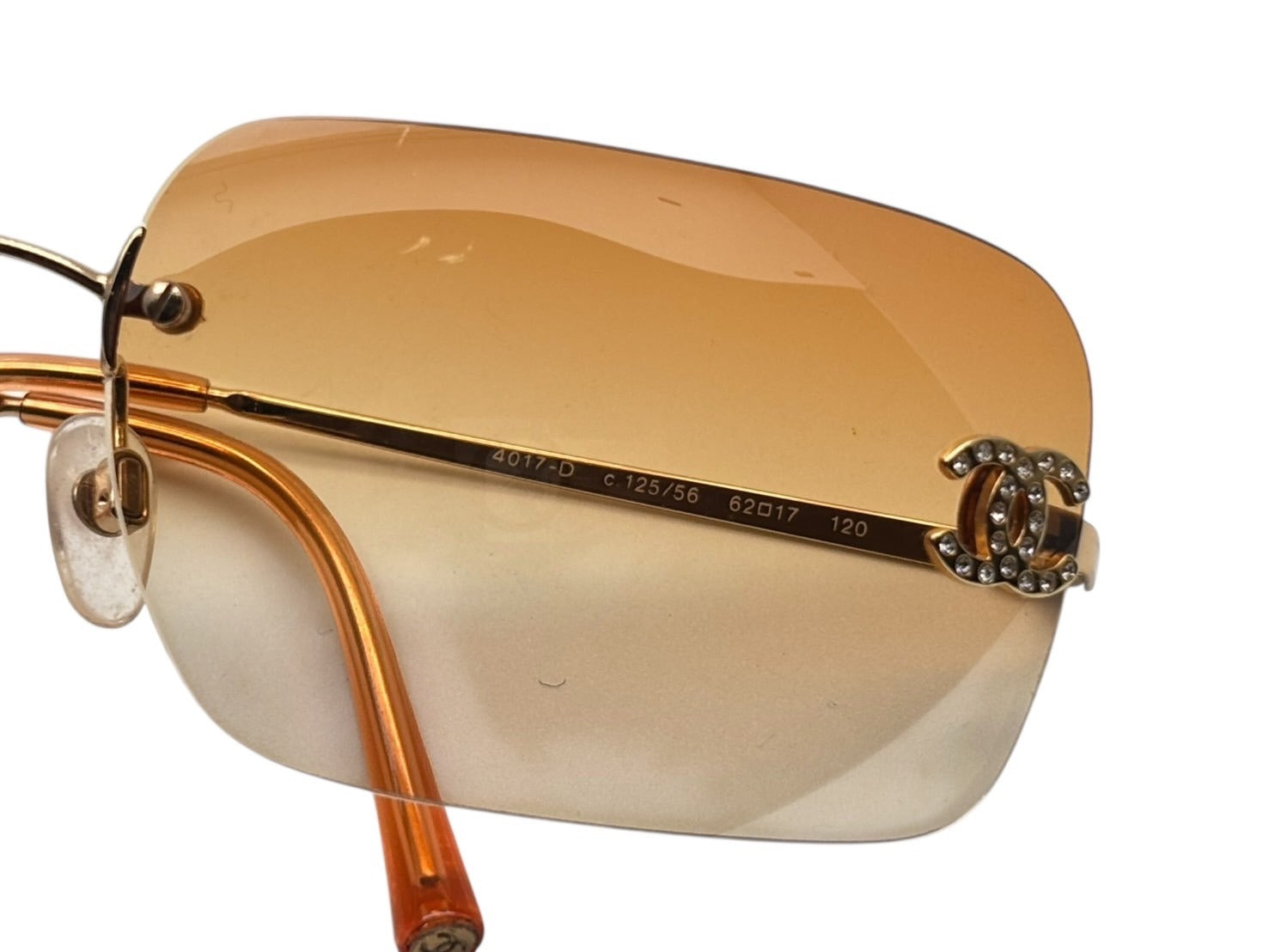 グラデーションレンズやラインストーンがあしらわれたココマークが目を惹くアイテムです。