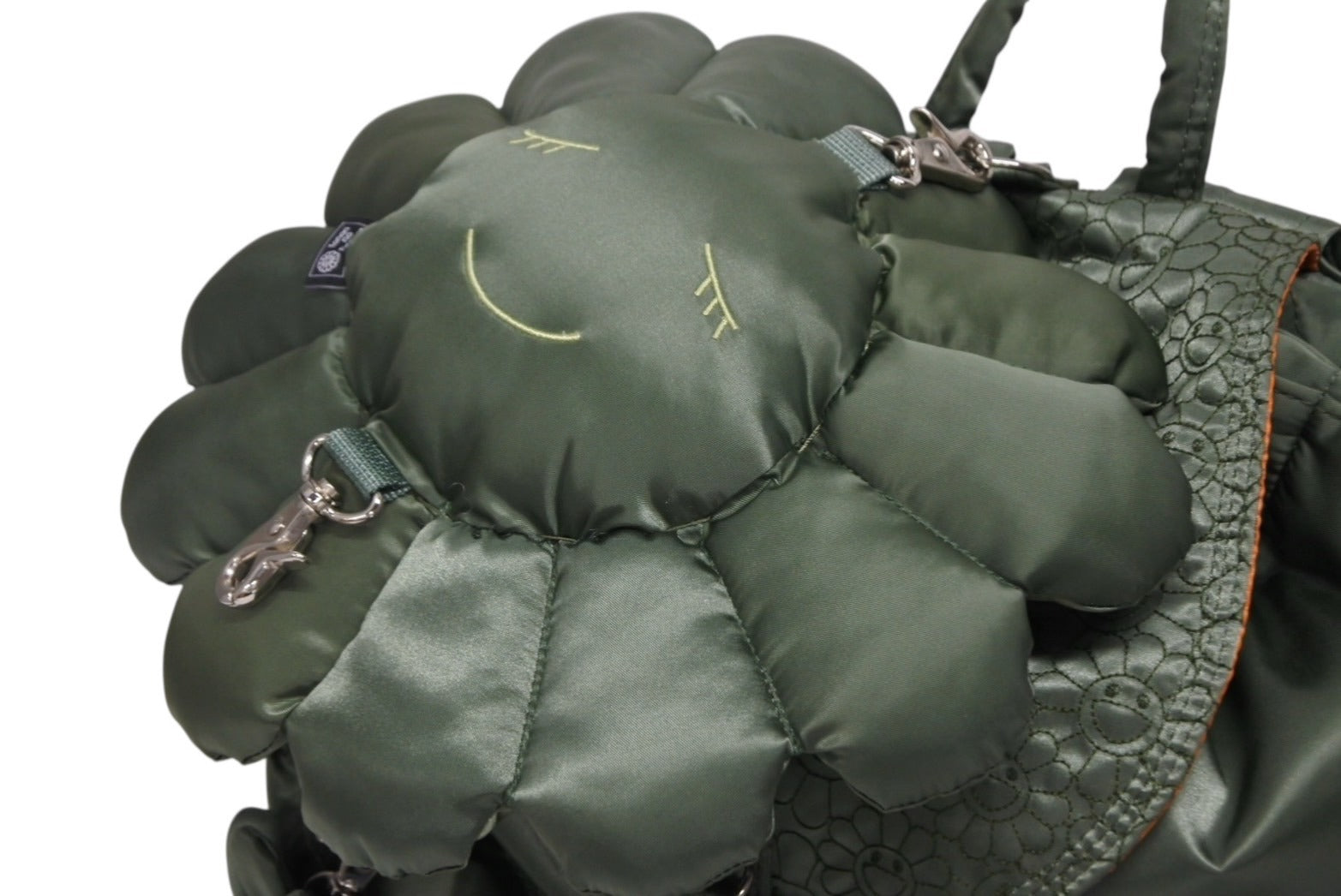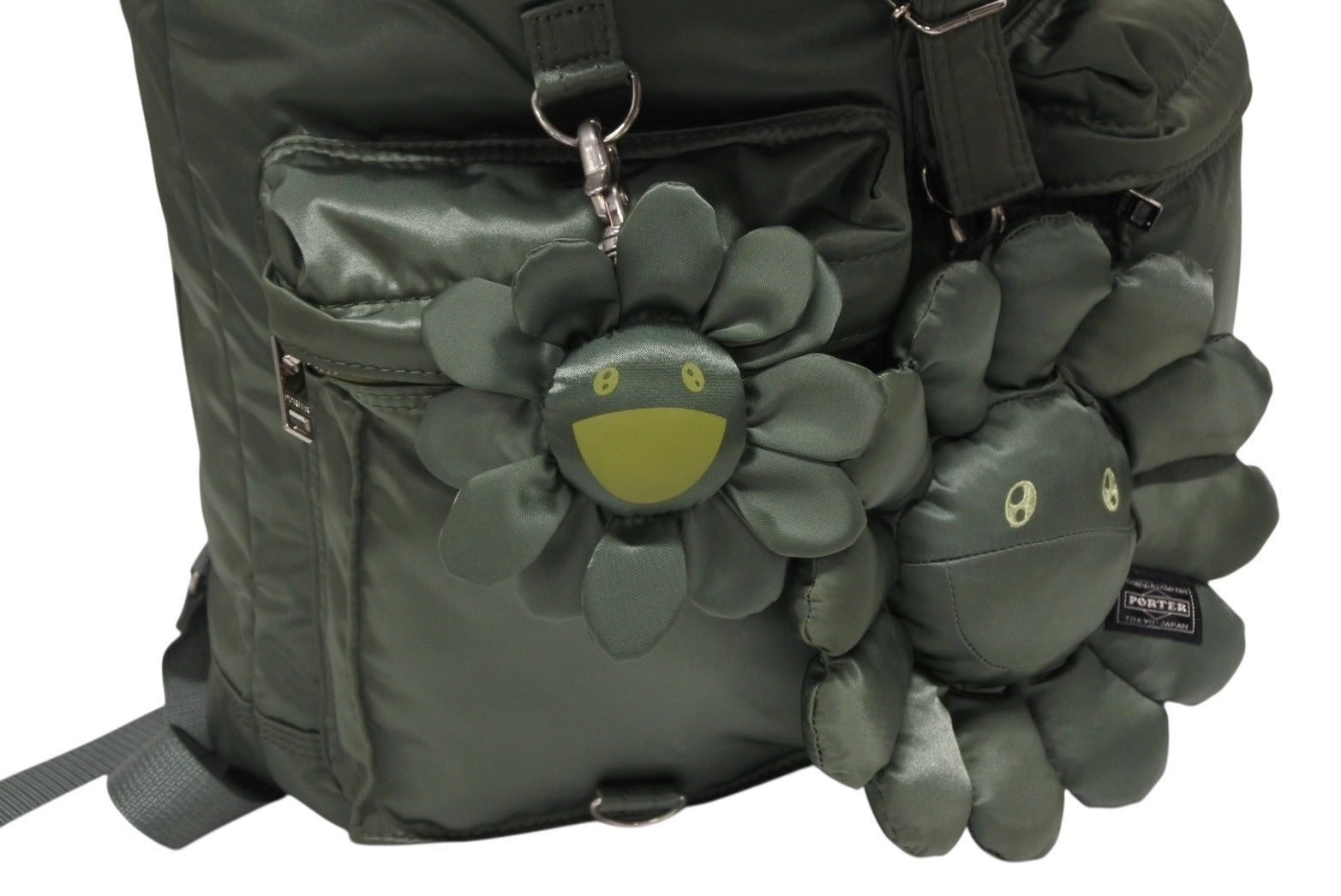 1983年に発表されて以来、PORTERの代名詞である「TANKER」シリーズをベースに、村上隆氏の代表的なアートである“お花“を随所にあしらったデザインが特徴です。全型共通して“お花”のぬいぐるみを装着できる仕様や外装の一部パーツには刺繍加工、内装生地と付属の巾着にも“お花”をプリントした特別な仕上がりです。