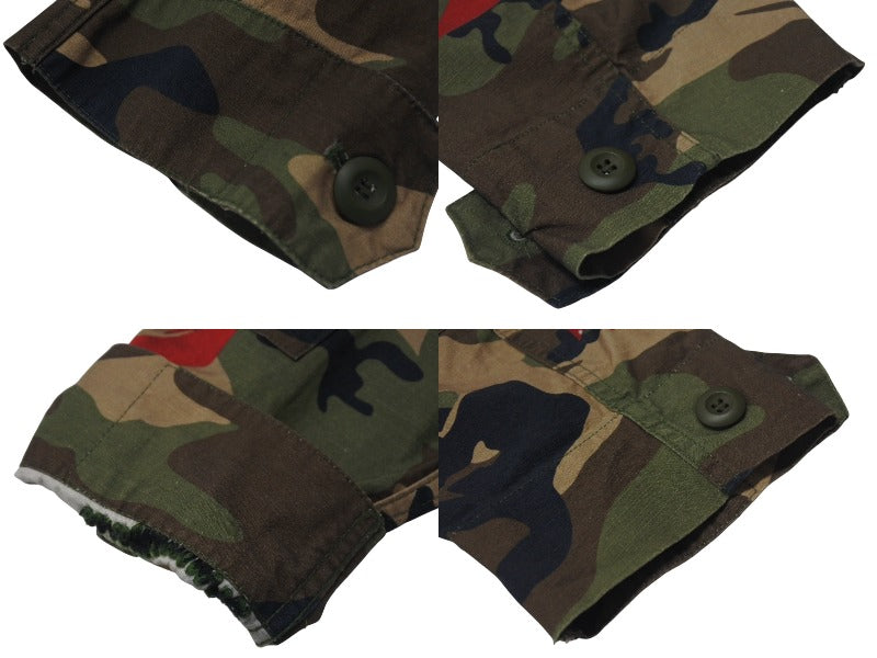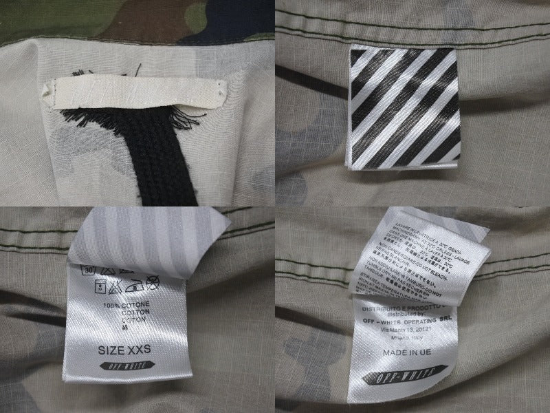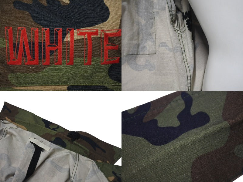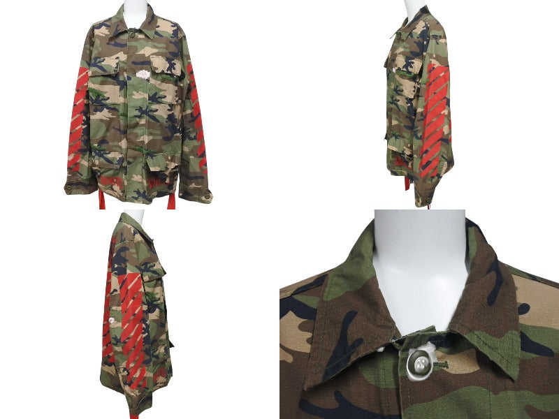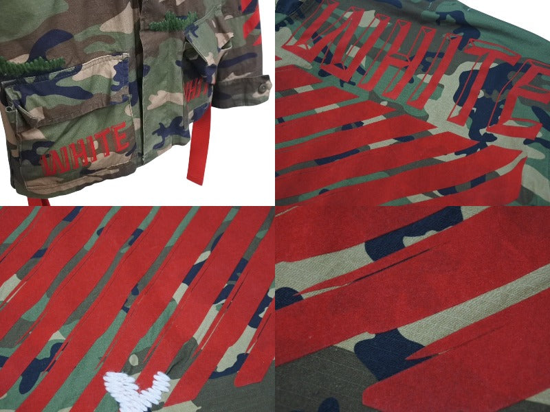 OFF WHITE オフホワイト 15AW バックアローカモ柄ミリタリージャケットブルゾン コットン グリーン レッド サイズXXS 美品 中古 4b001480