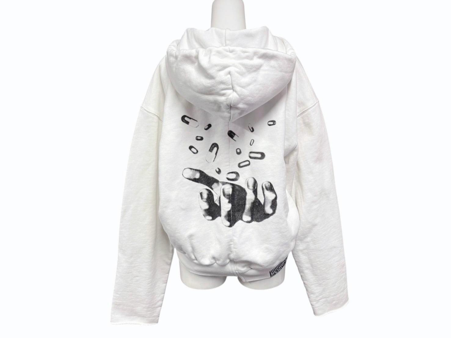 フロントはロゴで背面は錠剤プリントの印象的なアイテムです。