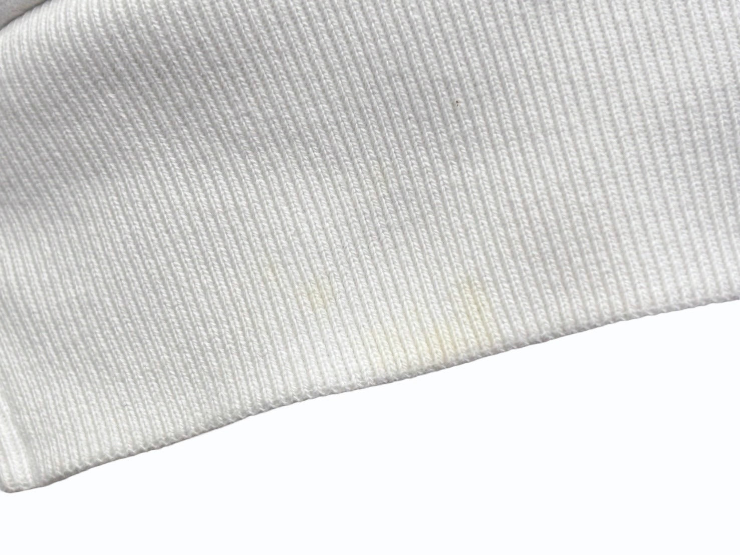 ネック、裾、右袖部分汚れあり。全体的に使用感あり。タグ部分ネームあり。