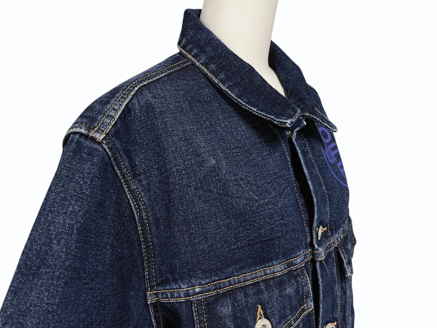 オフホワイトらしい背面にクロスの入ったデニムジャケットです。