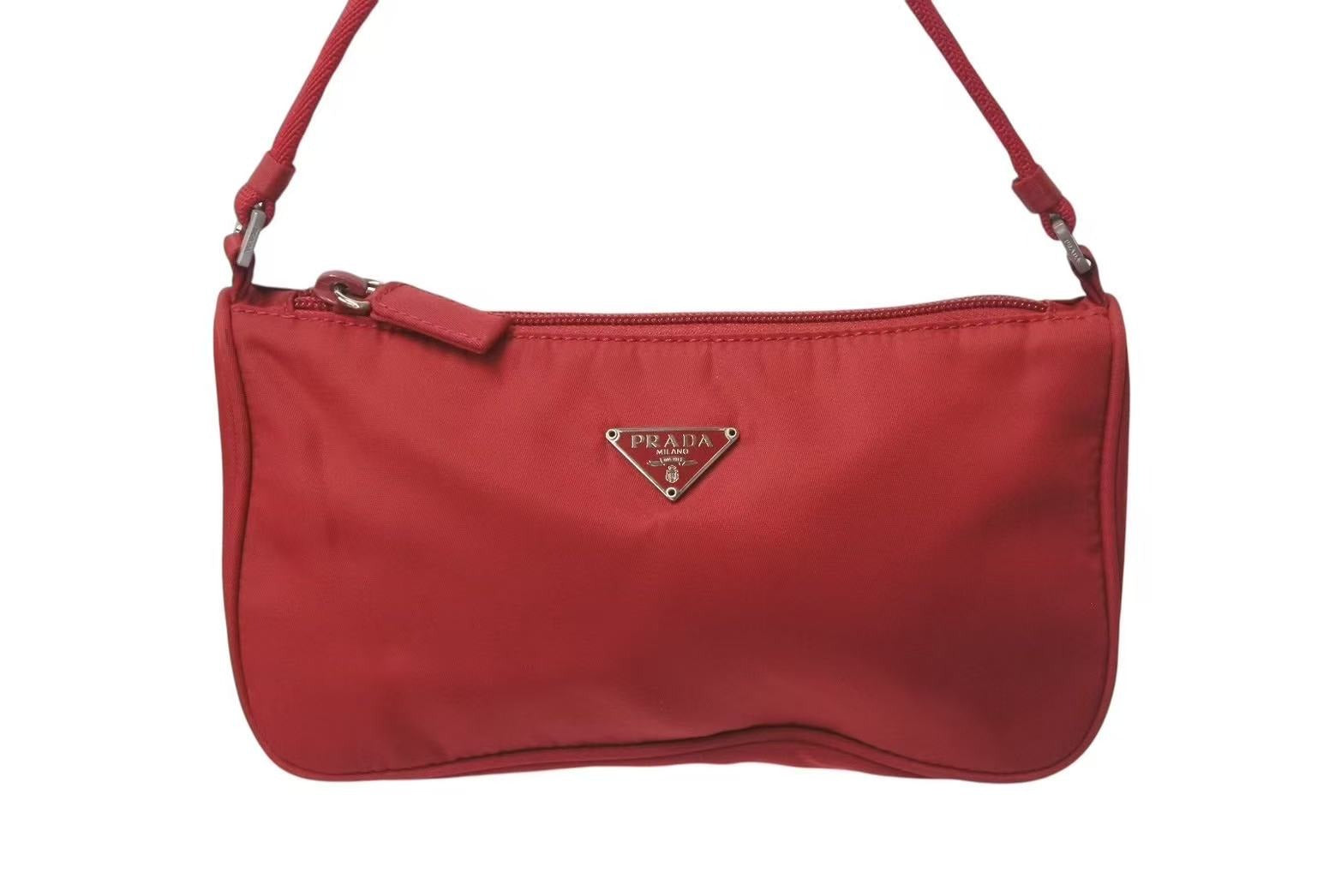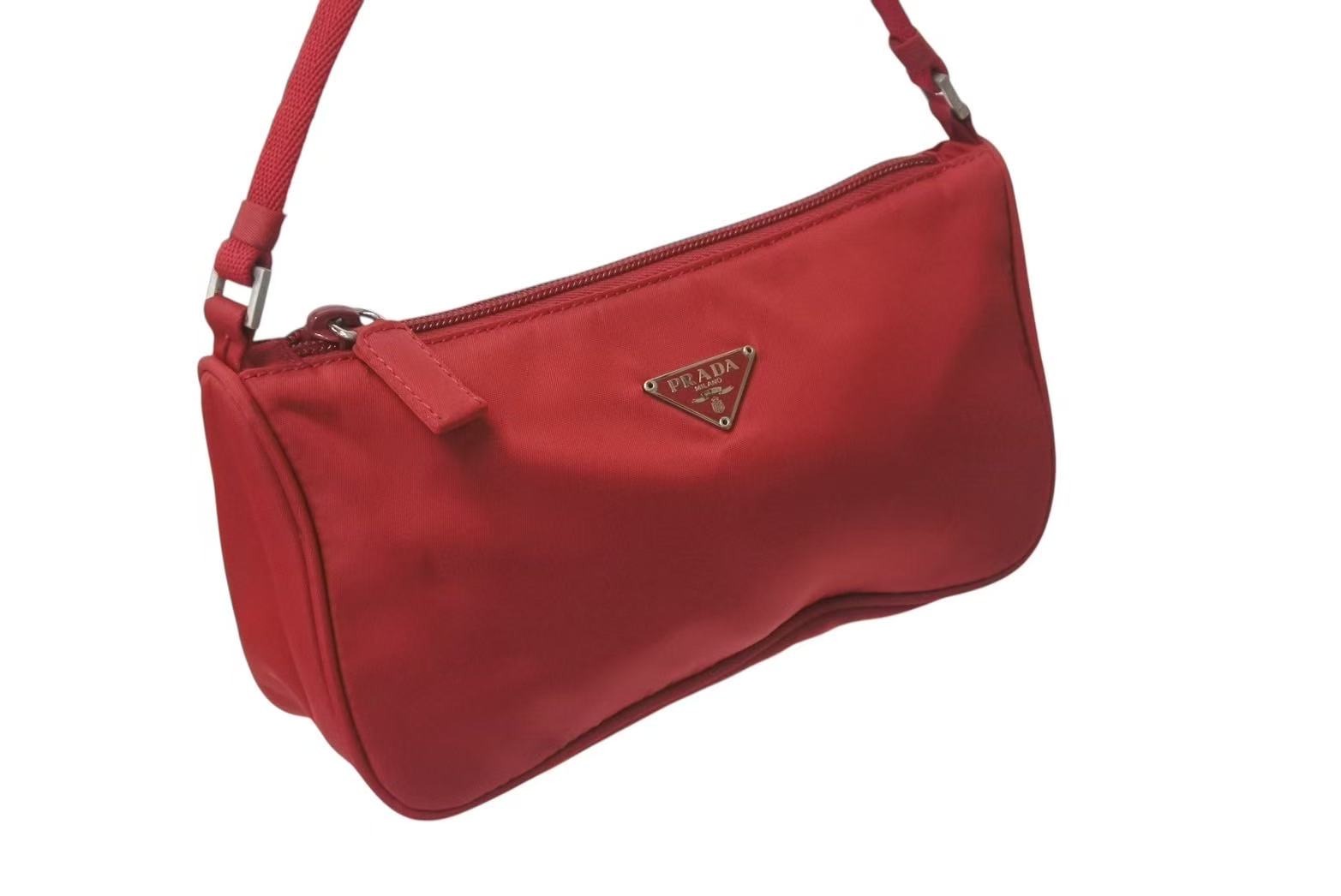 レッドカラーのナイロン アクセサリーポーチです。