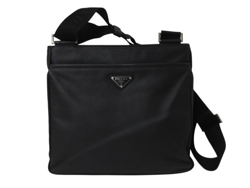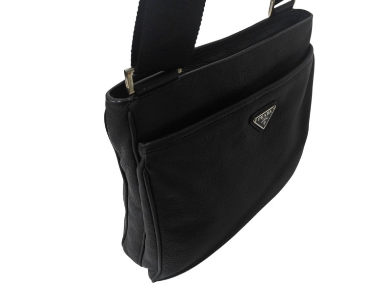 オールレザーのバッグにトライアングルロゴが付いている洗礼されたアイテムです。