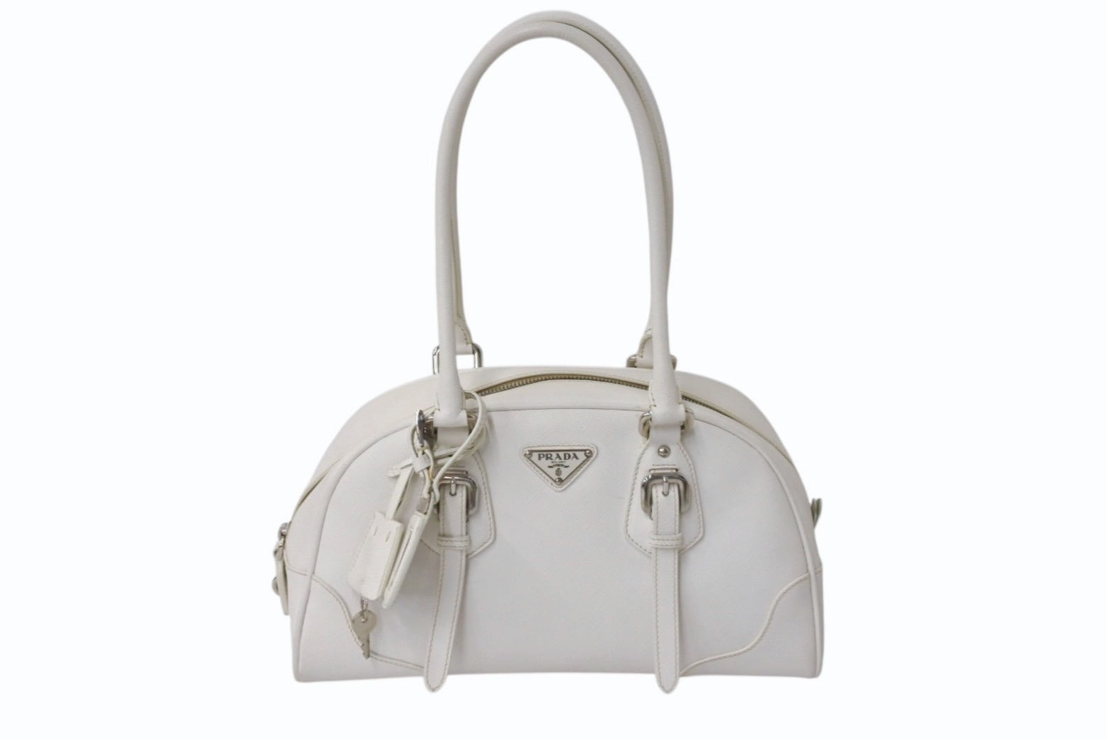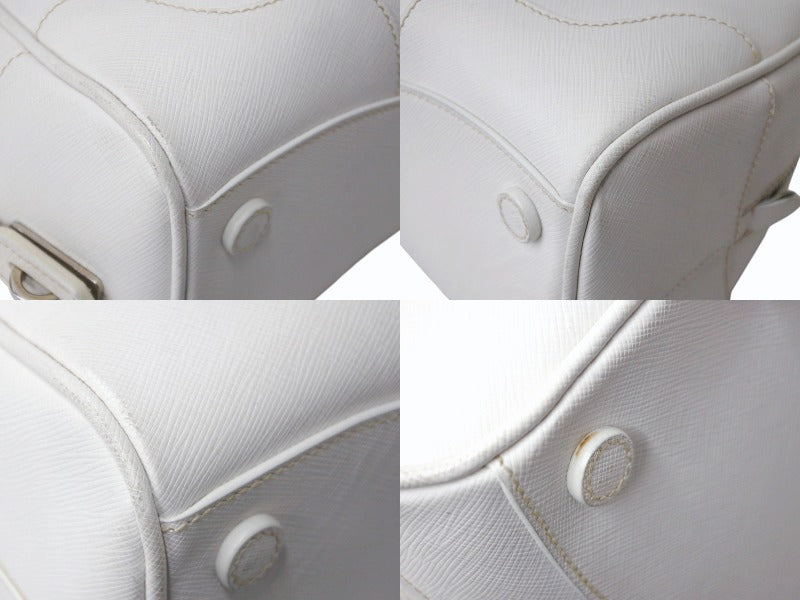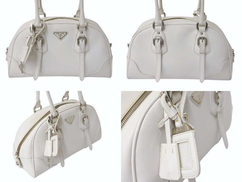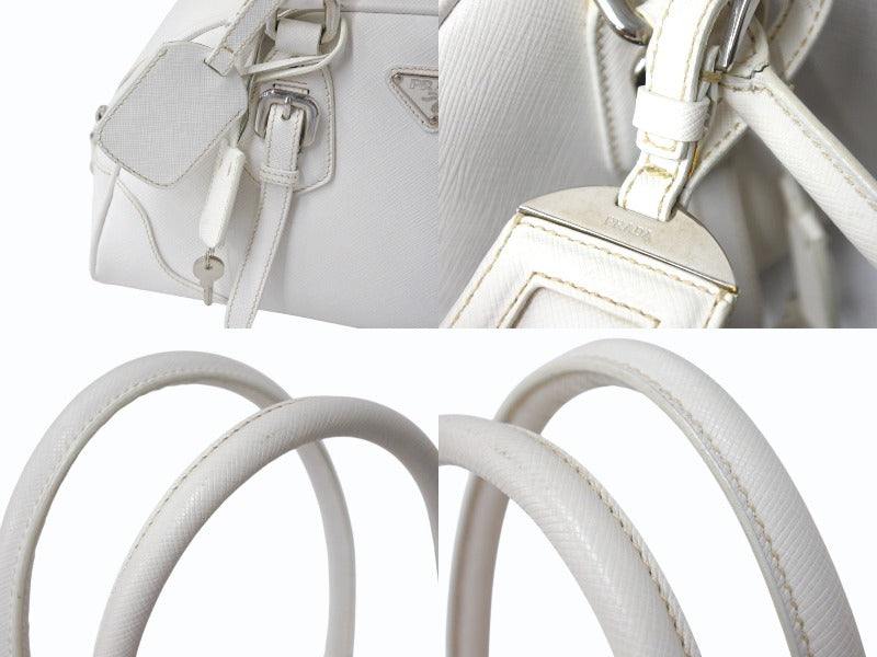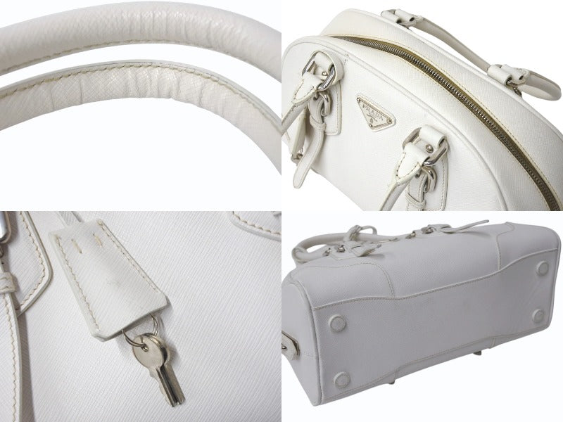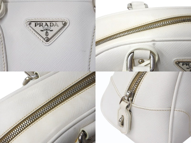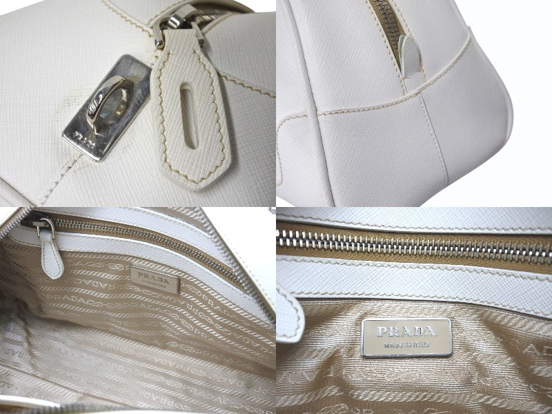 PRADA プラダ ハンドバッグ トライアングル ロゴ バッグ ホワイト サフィアーノレザー シルバー金具 美品 中古 4b003396
