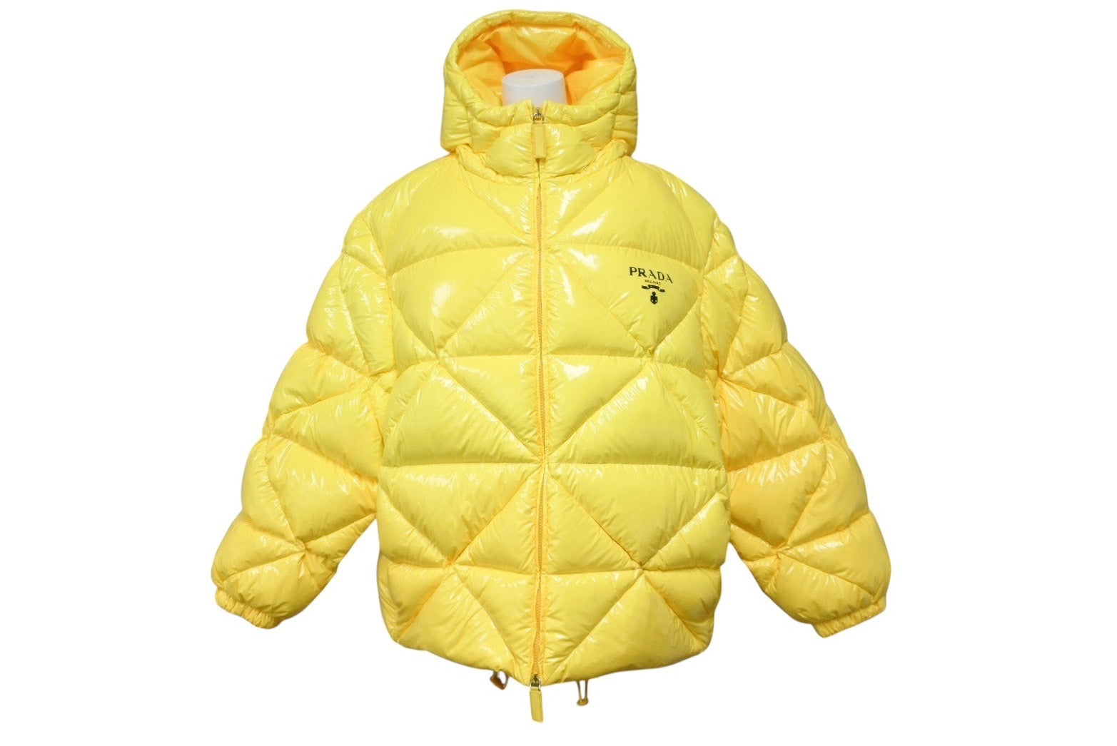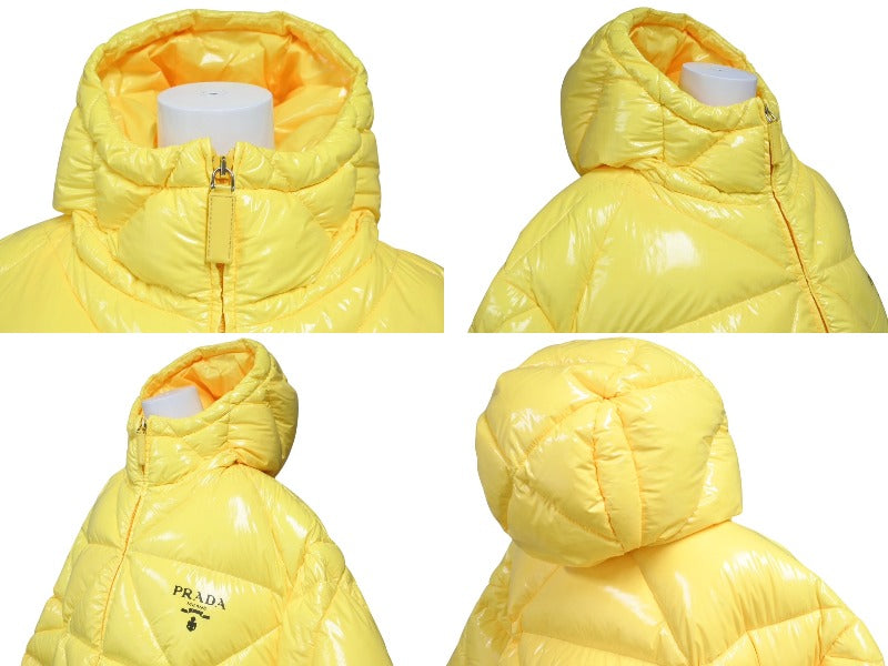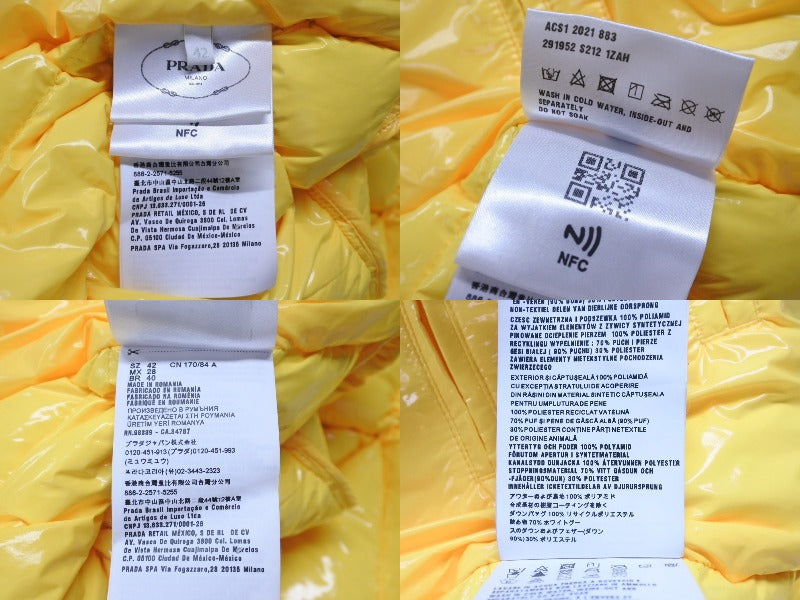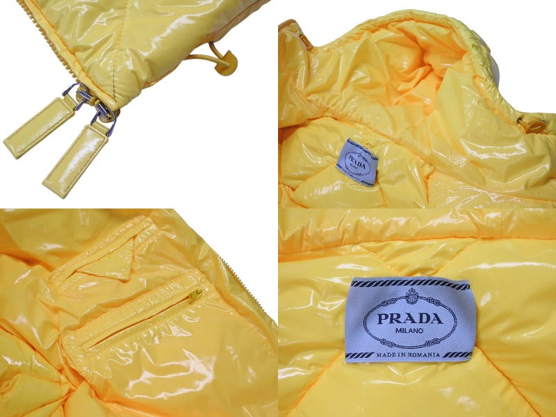 PRADA プラダ 21AW キルティング ナイロンダウンジャケット 291952 サイズ42 ロゴプリント イエロー 美品 中古 4b004841