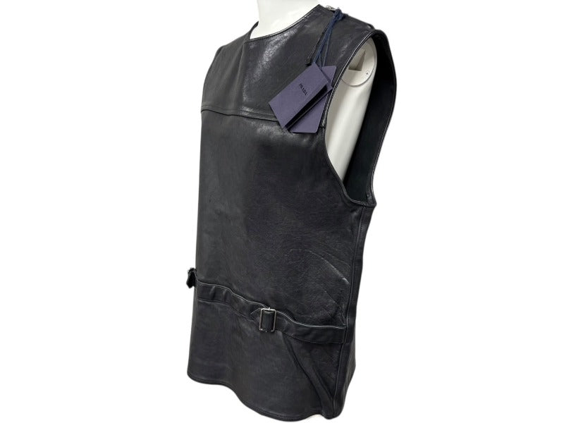 ウエスト部分にベルトがあしらわれたレザーベストになります。