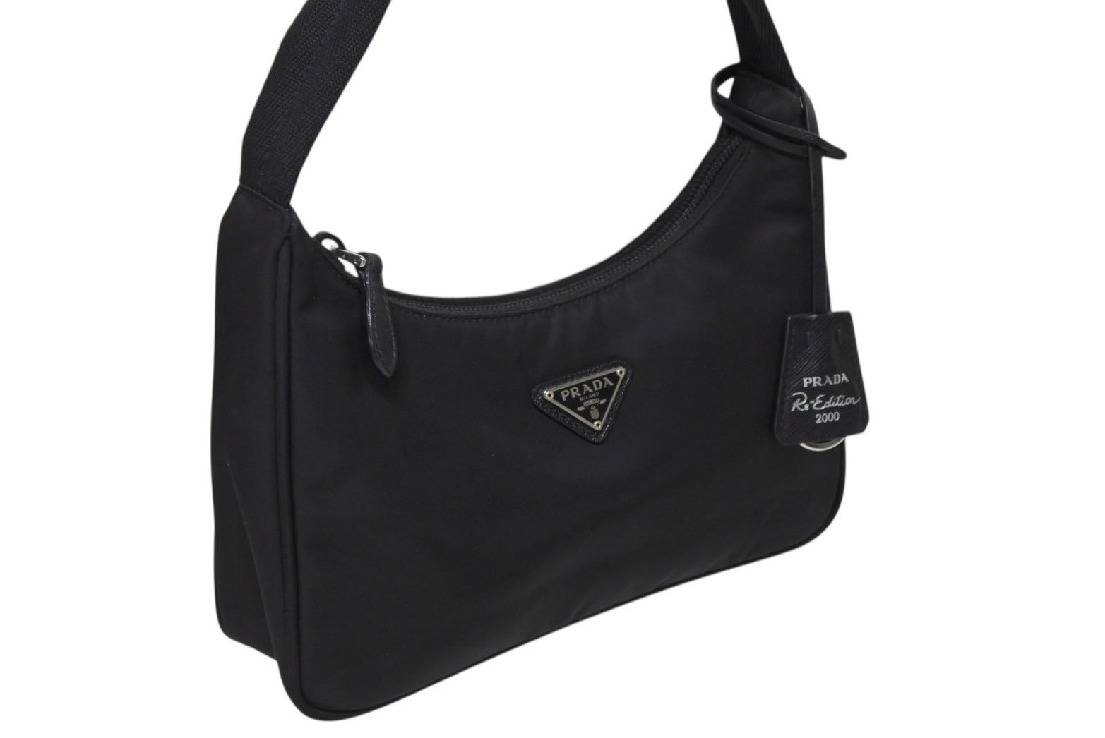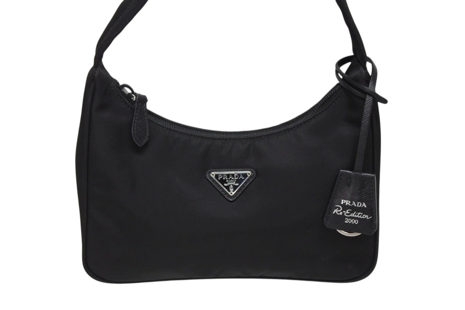 プラダのトライアングルロゴプレートがアクセントになったシンプルなデザインとなっています。