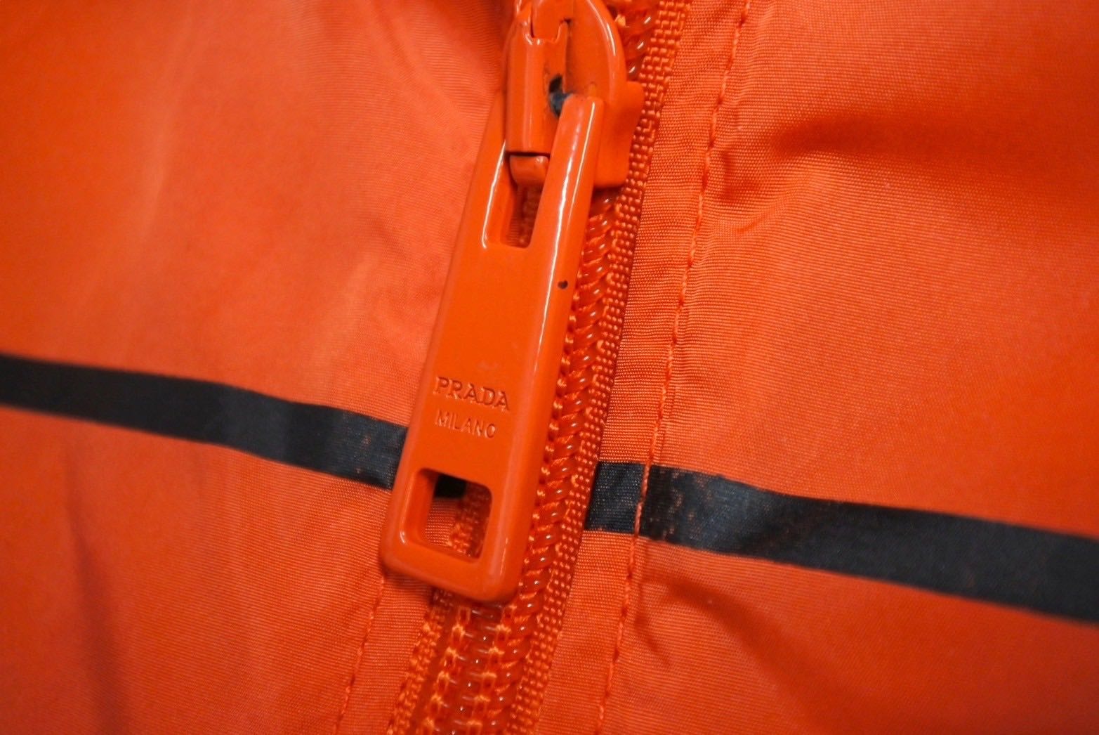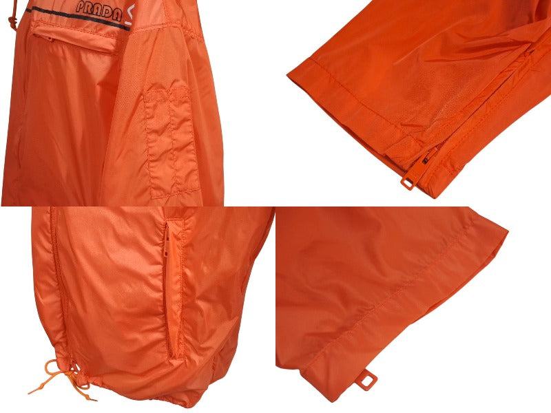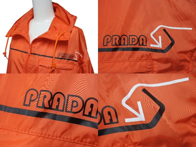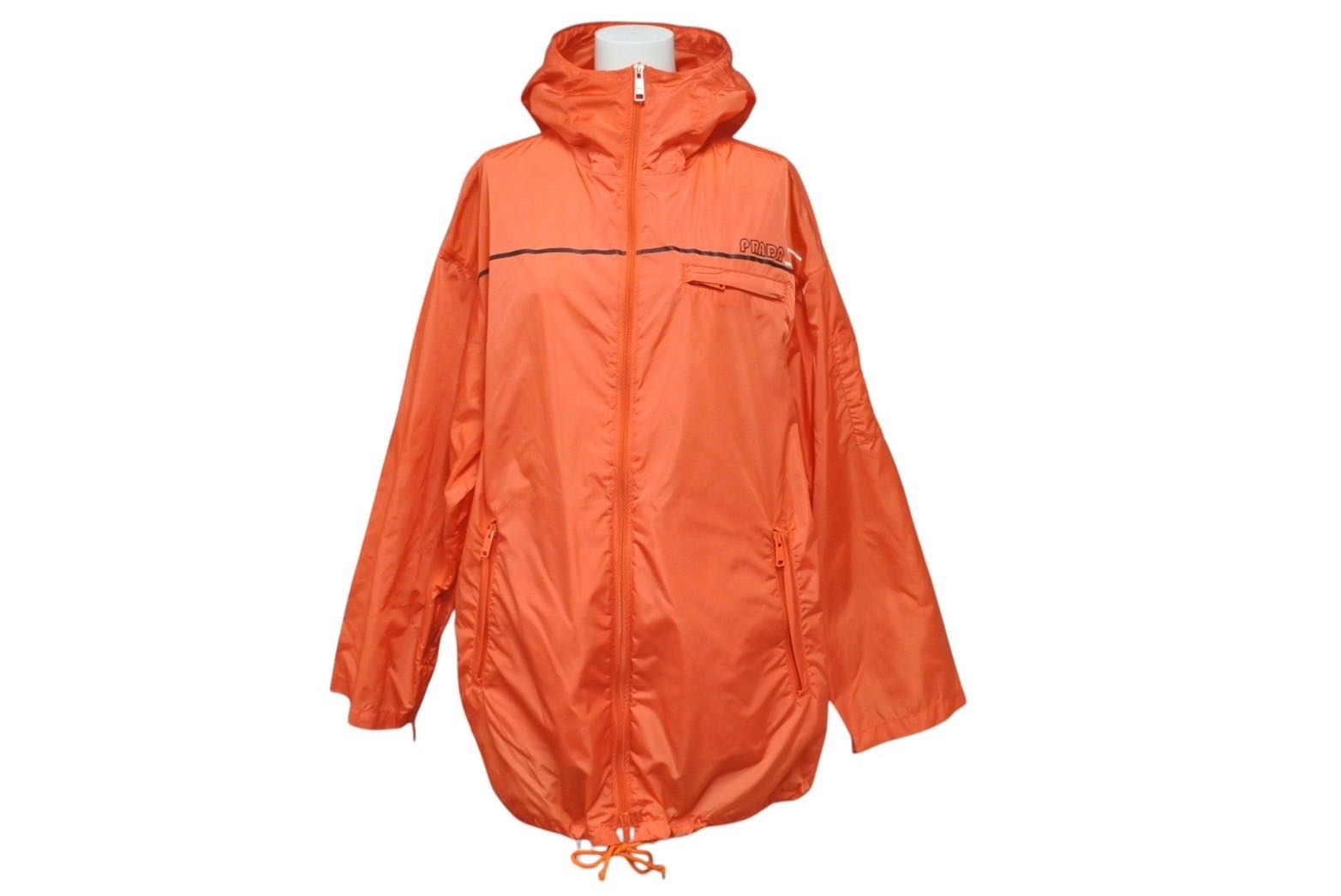 PRADA プラダ ナイロンジャケット 291427 サイズS ロゴプリント オレンジ ナイロン ジップアップ 美品 中古 4c070997