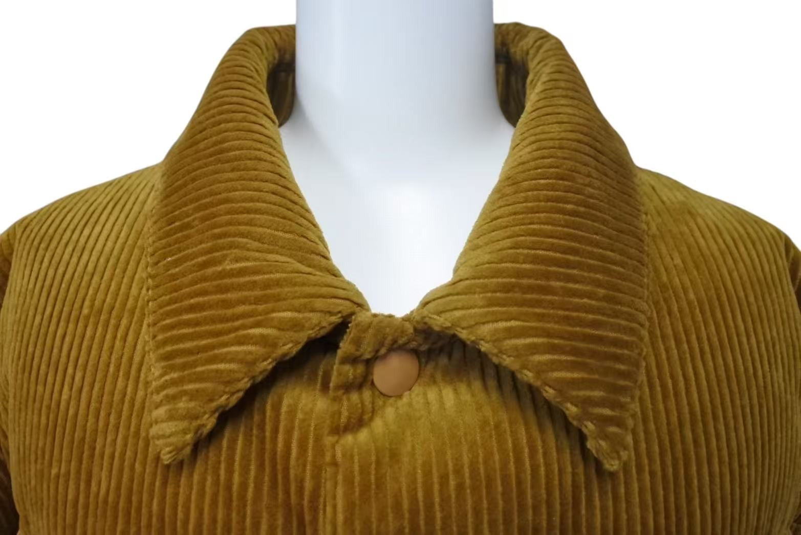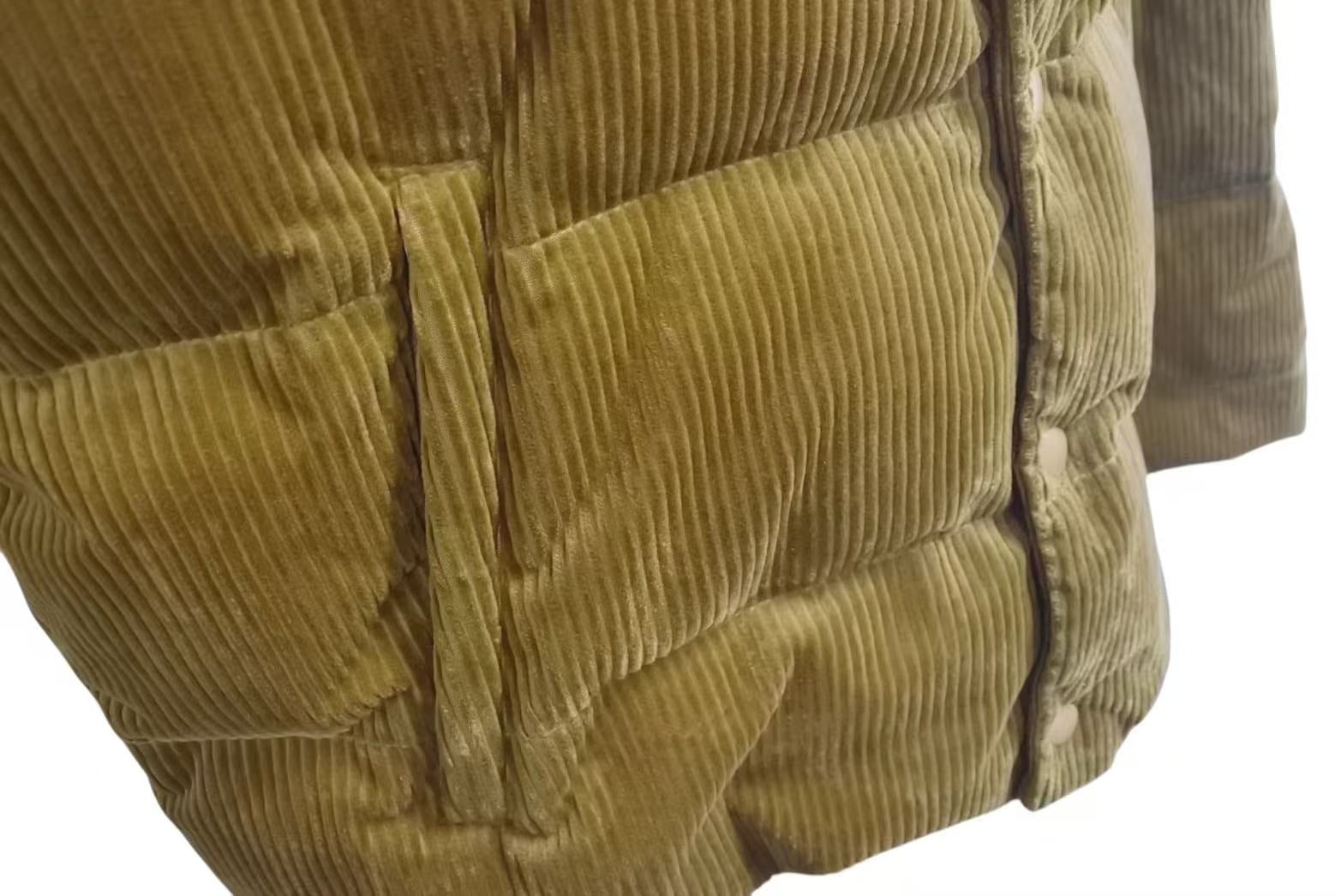 コーデュロイの独特の質感が柔らかなボリューム感を引き立てるダウンジャケットです。