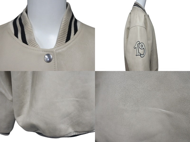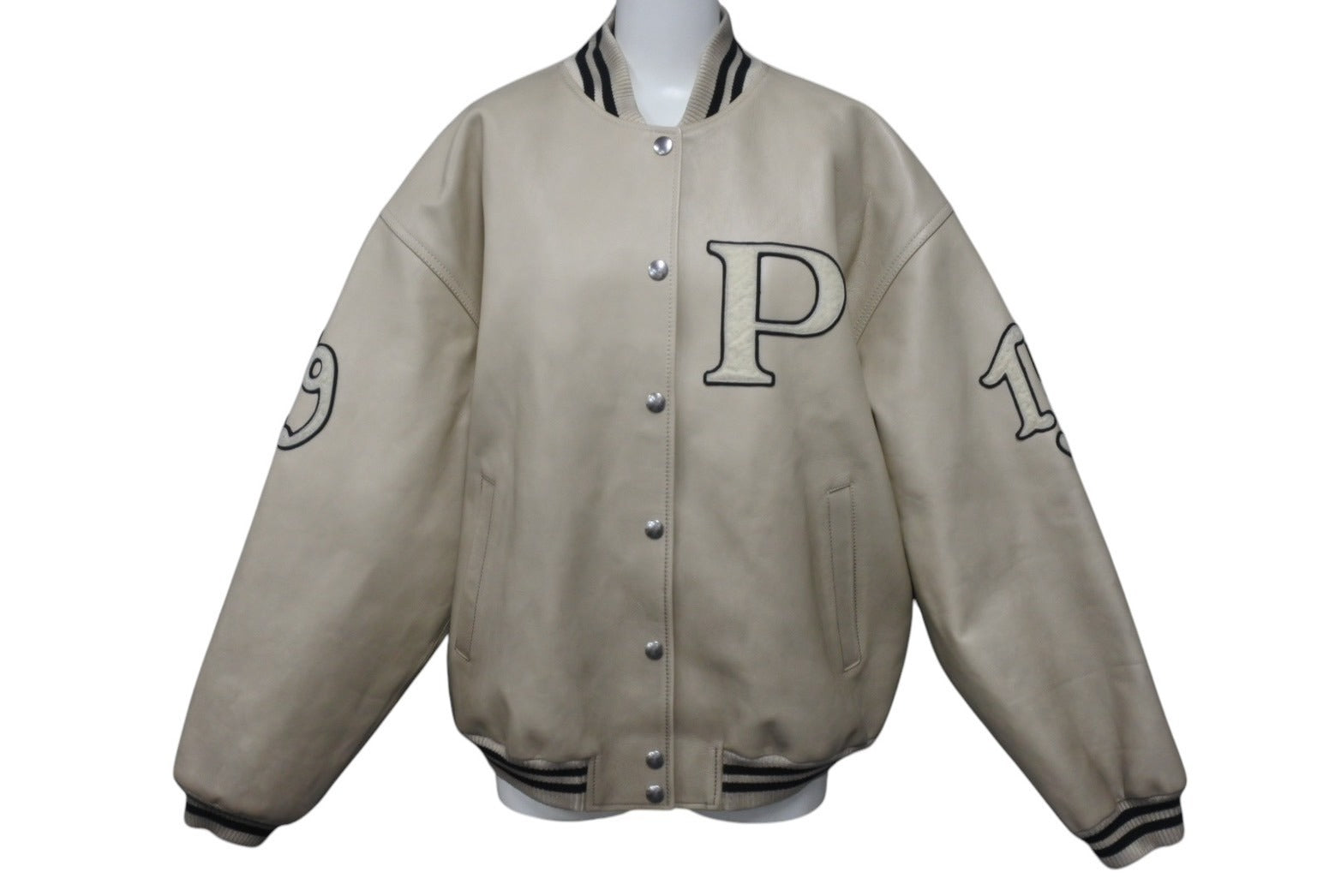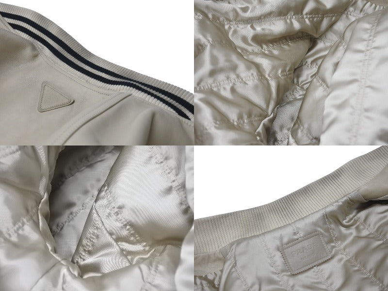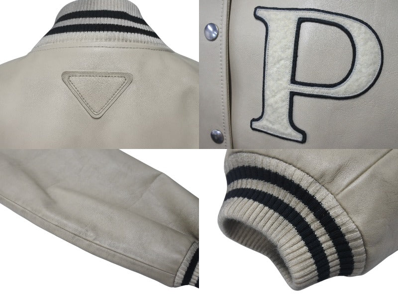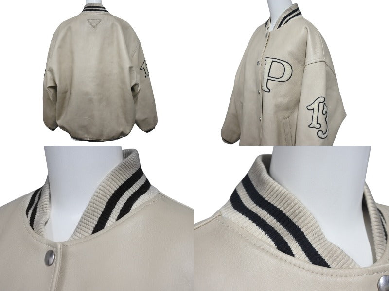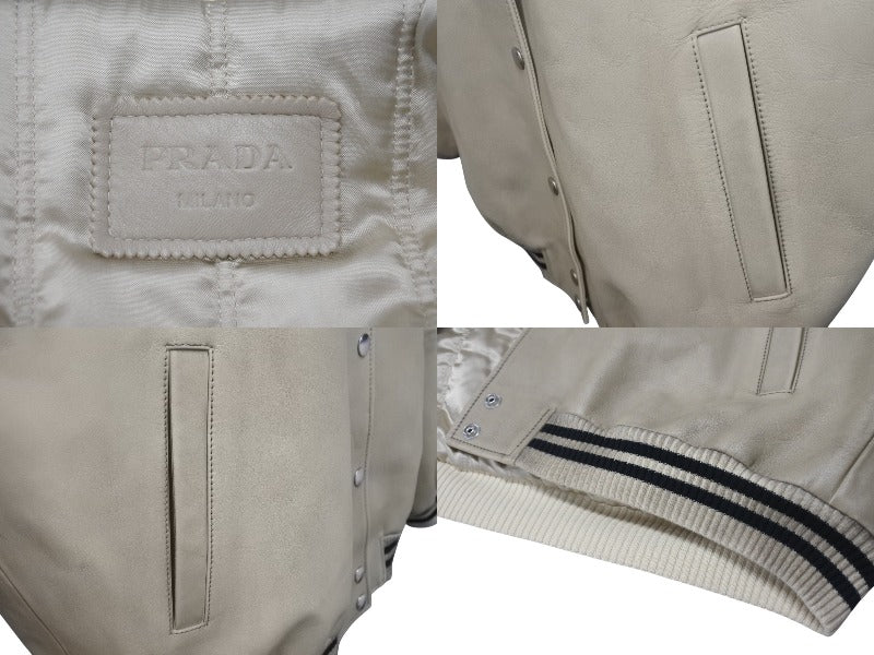 極美品 PRADA プラダ FROM THE RUNWAY パッチ付 レザー ボンバージャケット 58A190 S000 15Y0 アイボリー サイズ40 中古 4c075747