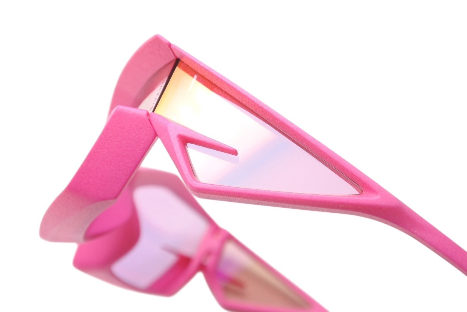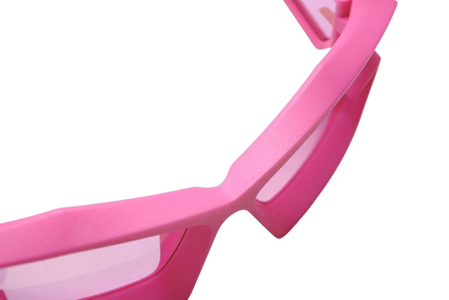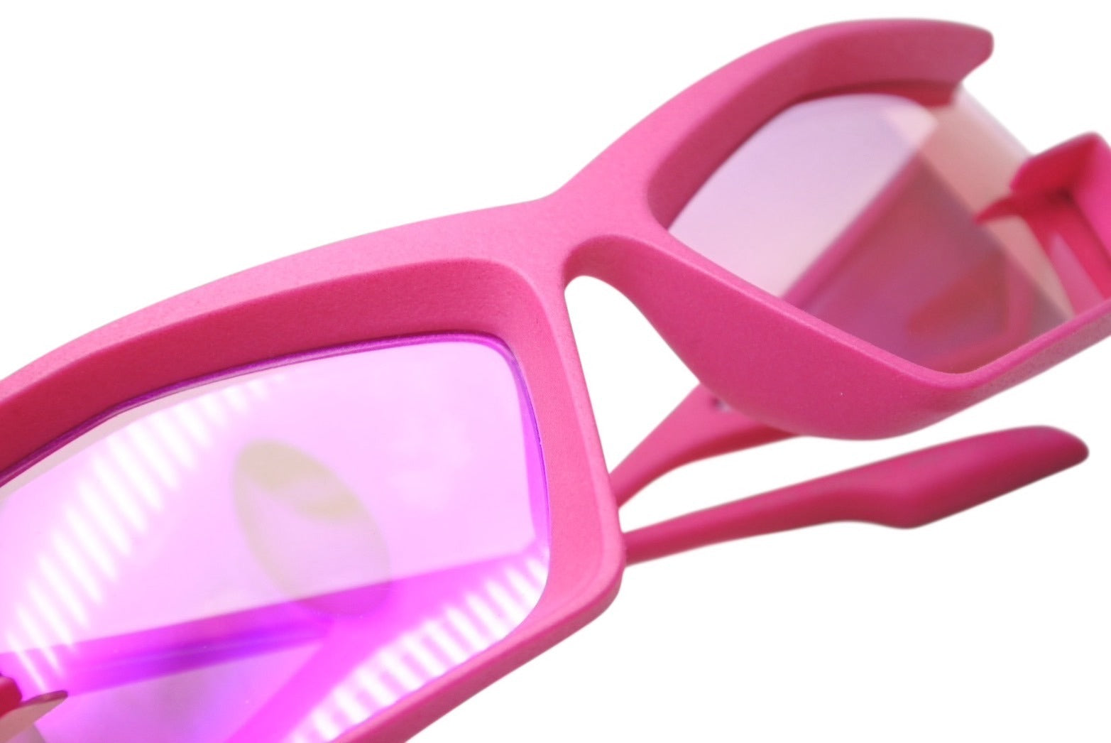 鮮やかなピンクカラーが目を惹くサングラスです。