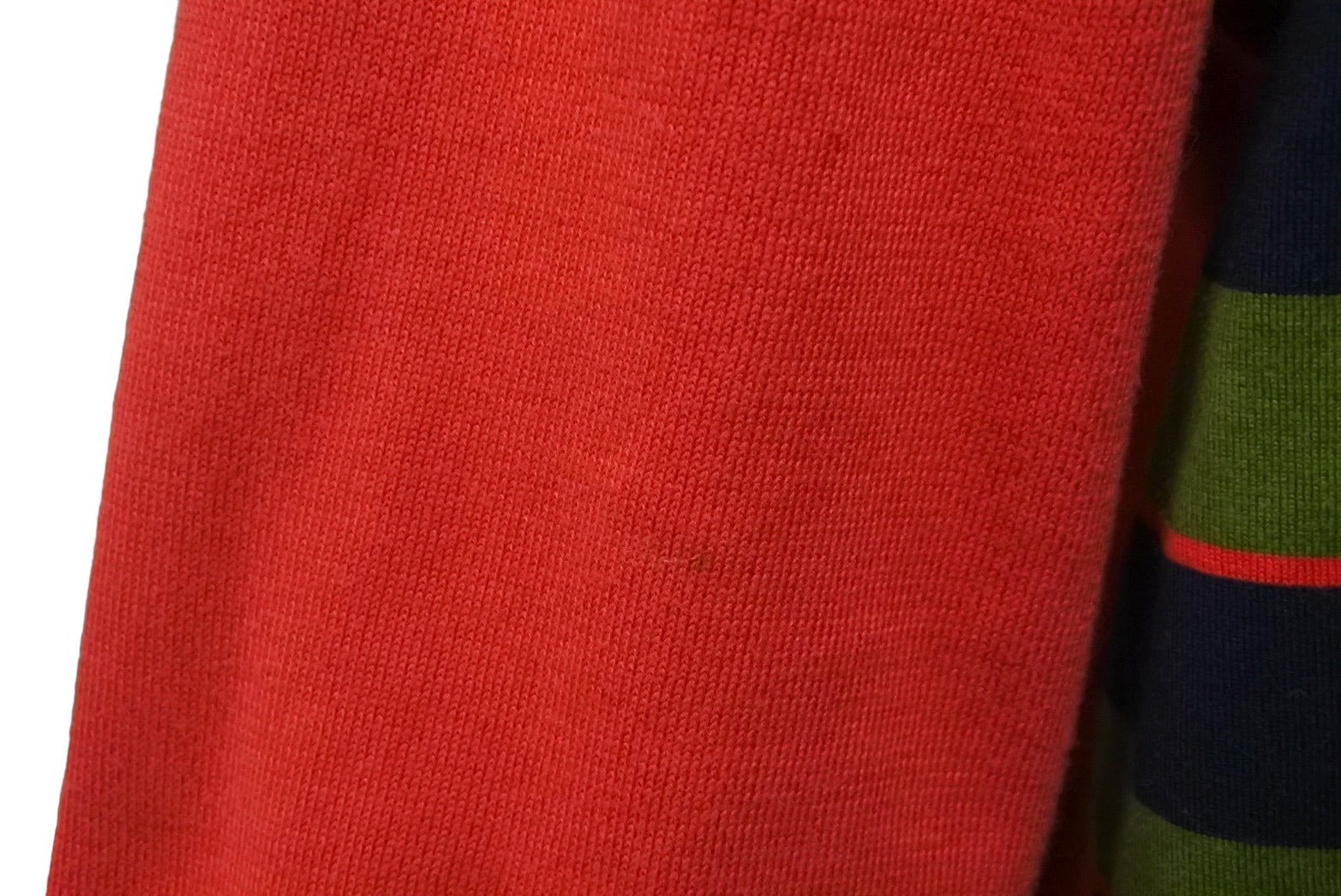 全体少々毛羽立ち、使用感あり、右袖に汚れあり、脇破れあり、襟、袖口に毛玉、少々汚れあり、中古品としてご使用頂ける状態です。
