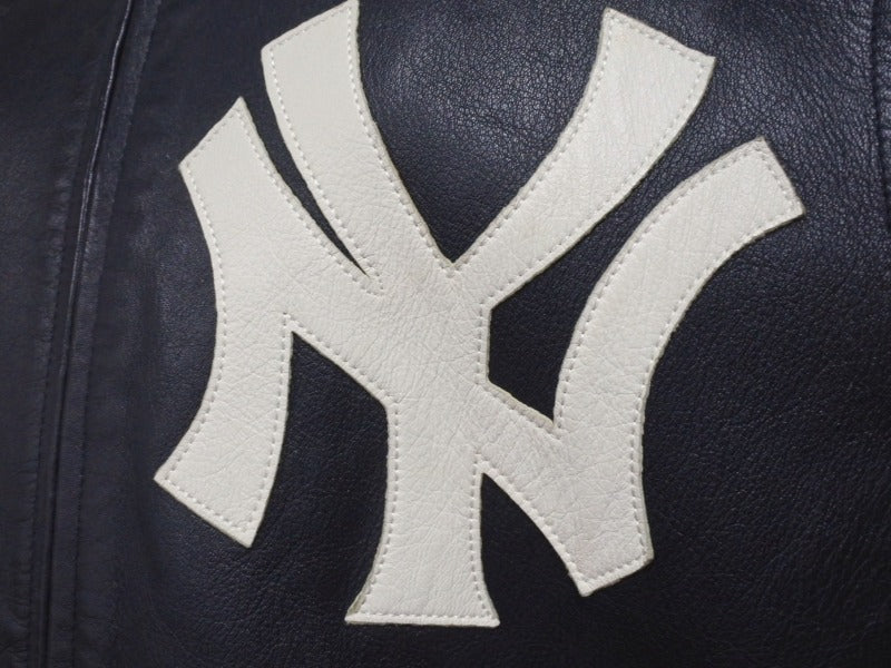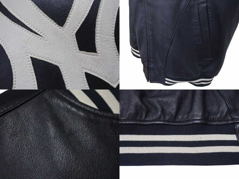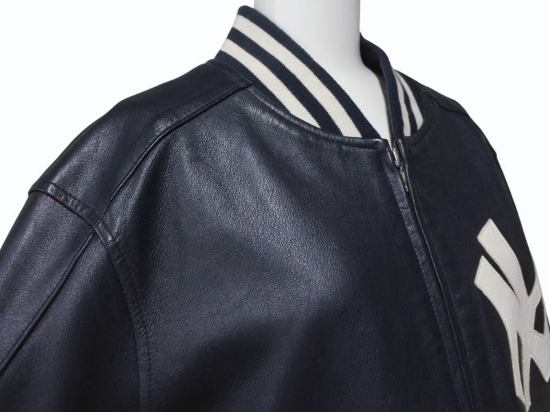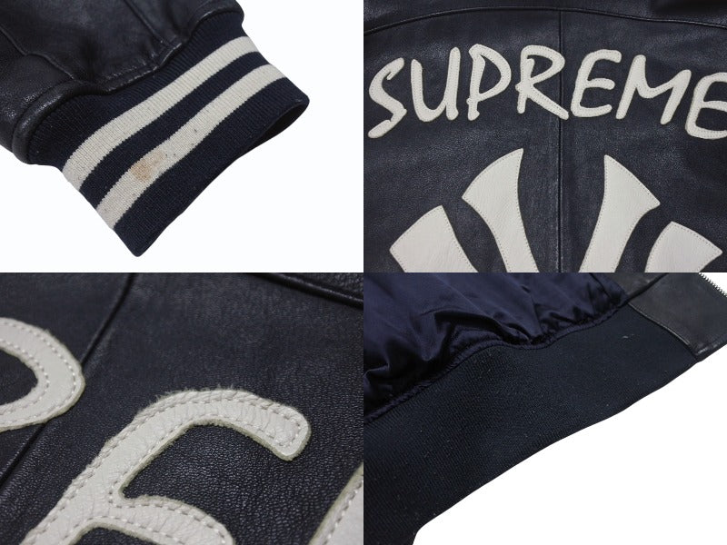 Supreme x Yankees シュプリームヤンキース ベースボールジャケット RN101837 ラムスキン ポリエステル ネイビー 美品 中古 4b005210