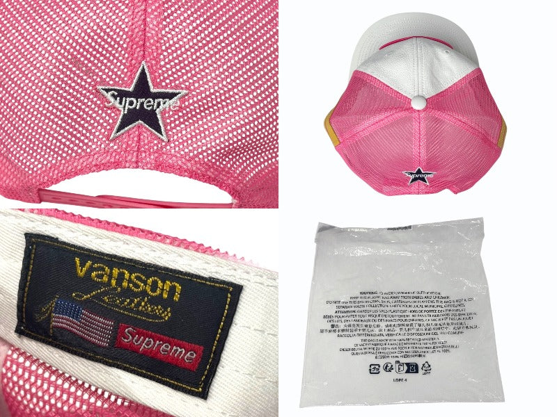 新品未使用 Supreme シュプリーム × Vanson ヴァンソン レザーキャップ ピンク ホワイト ONE SIZE 58cm H79FW25 中古 4b006373
