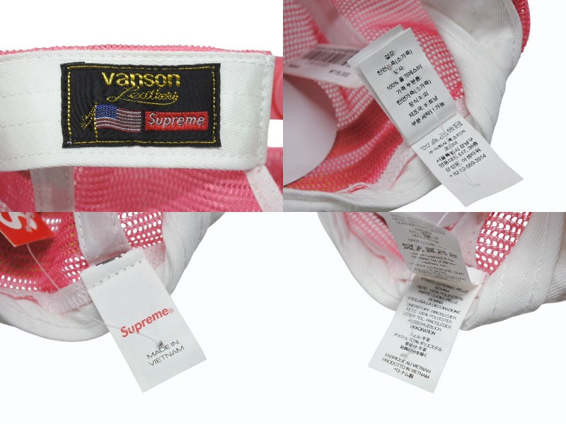 新品未使用 Supreme シュプリーム × Vanson ヴァンソン レザーキャップ ピンク ホワイト ONE SIZE 58cm H79FW25 中古 4b006374