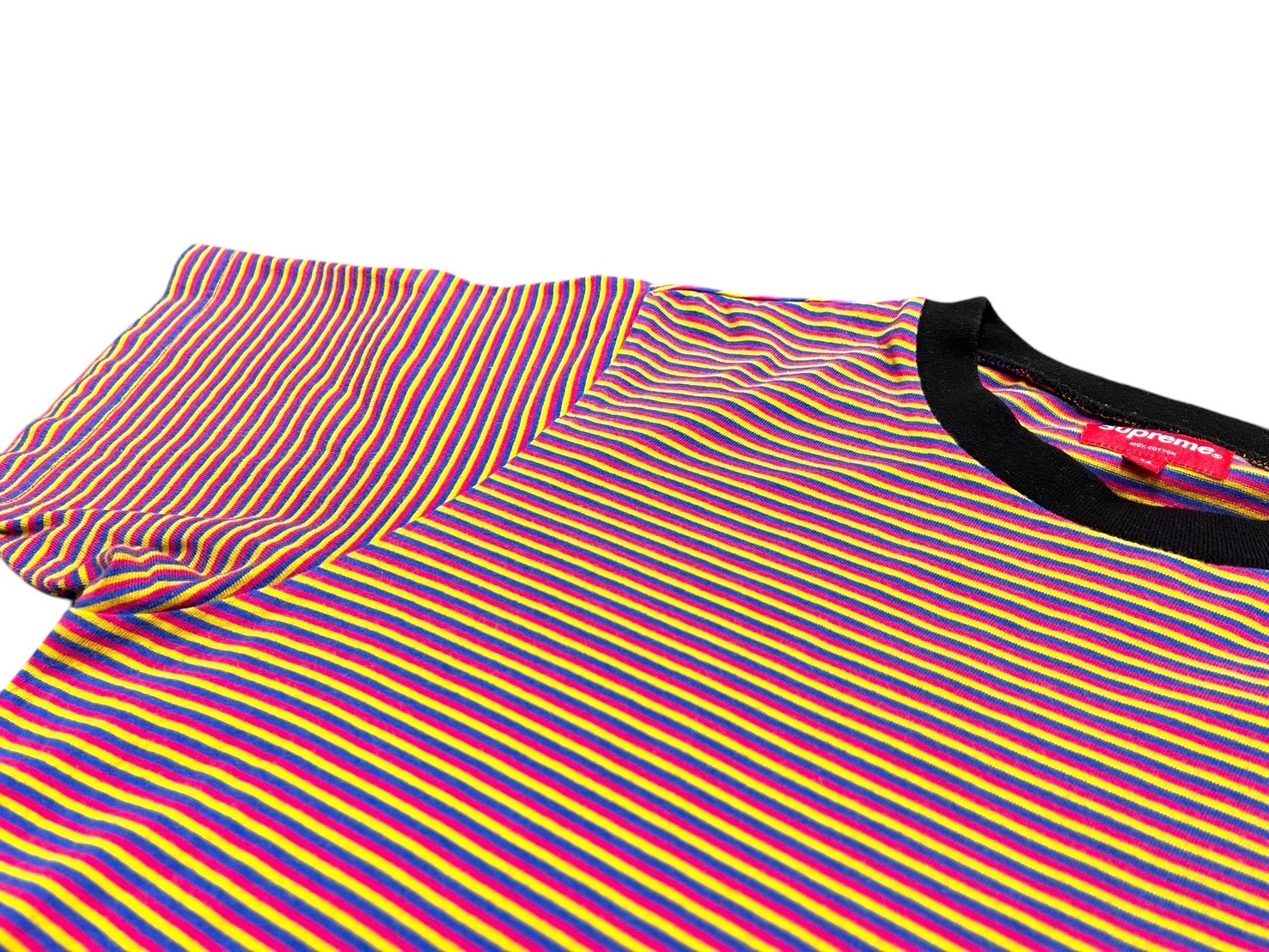 Supreme シュプリーム 16ss マルチ ボーダー 半袖Tシャツ ピンク イエロー ブルー コットン サイズM 美品 中古 4c076167