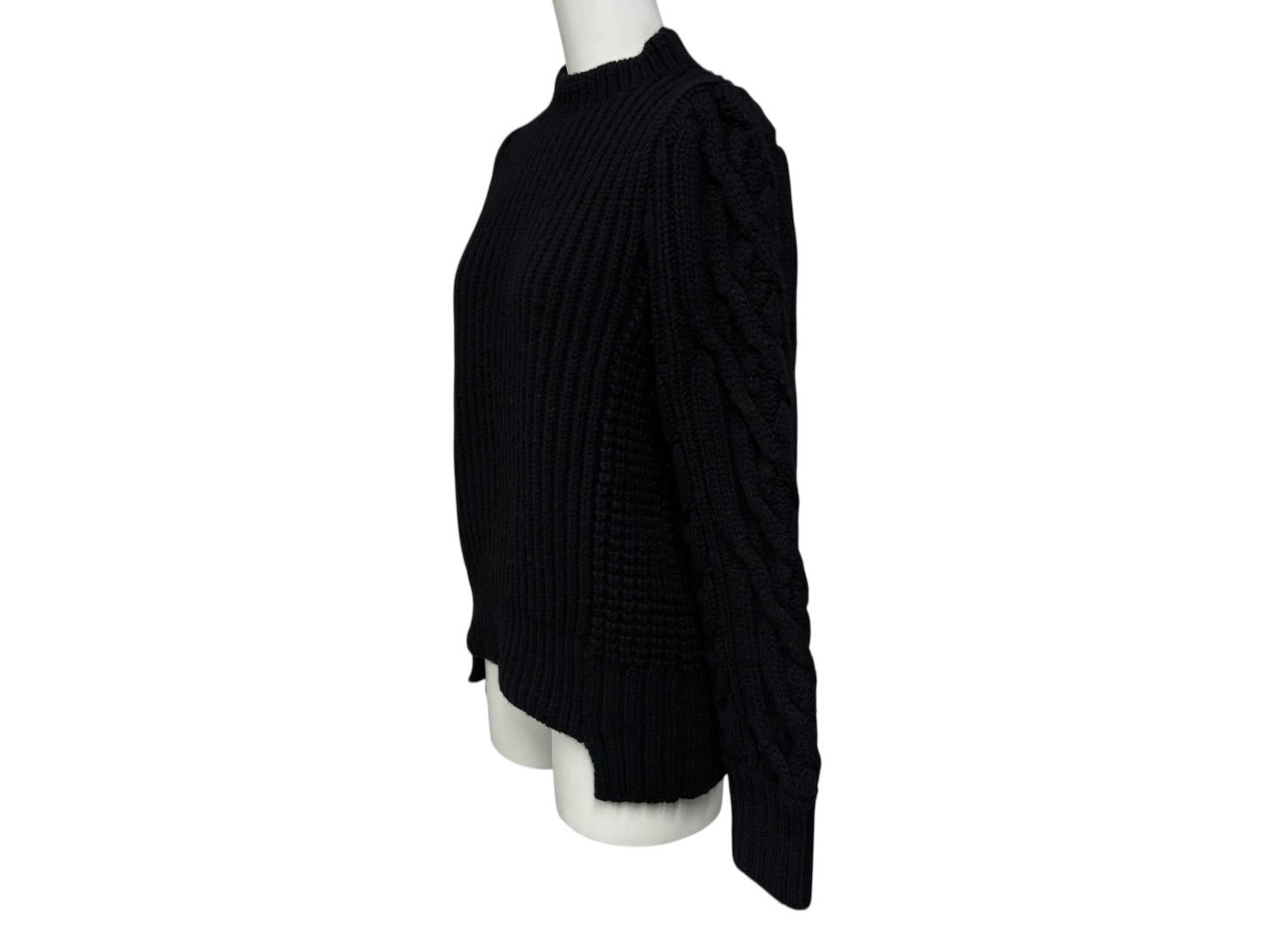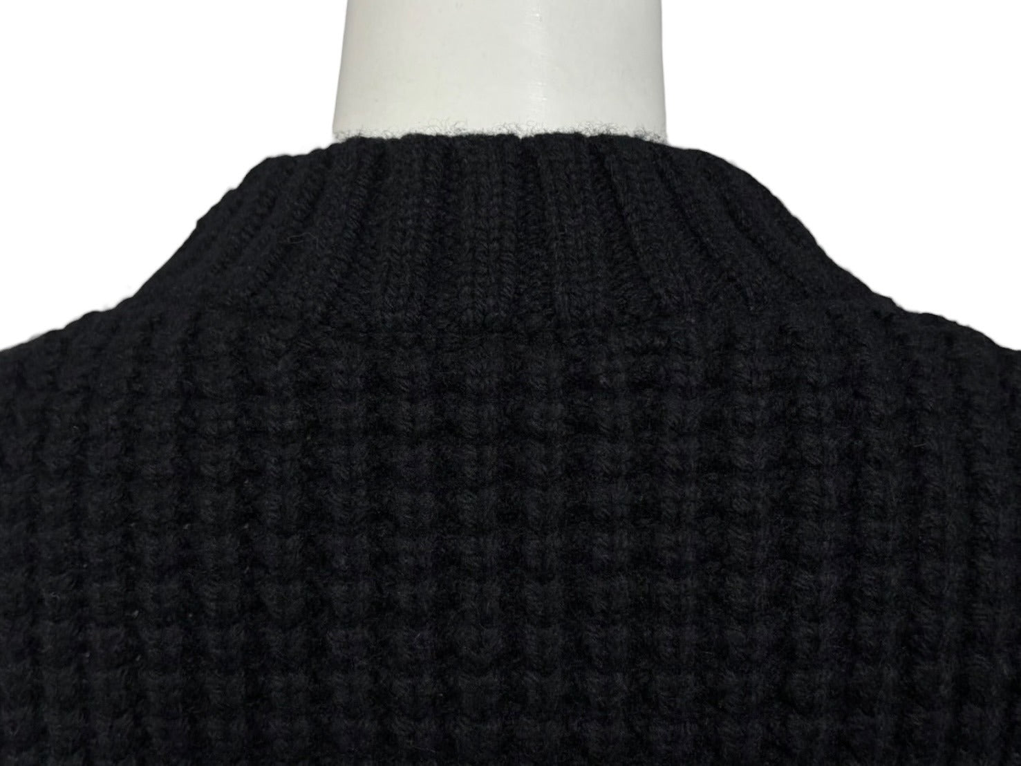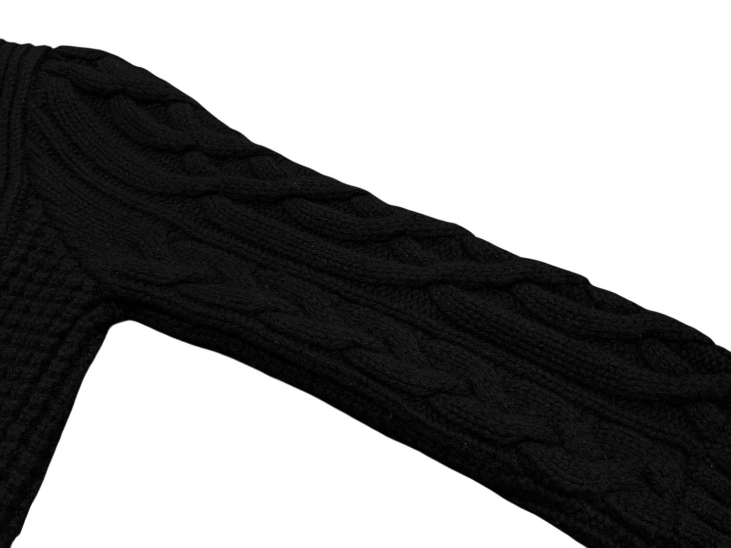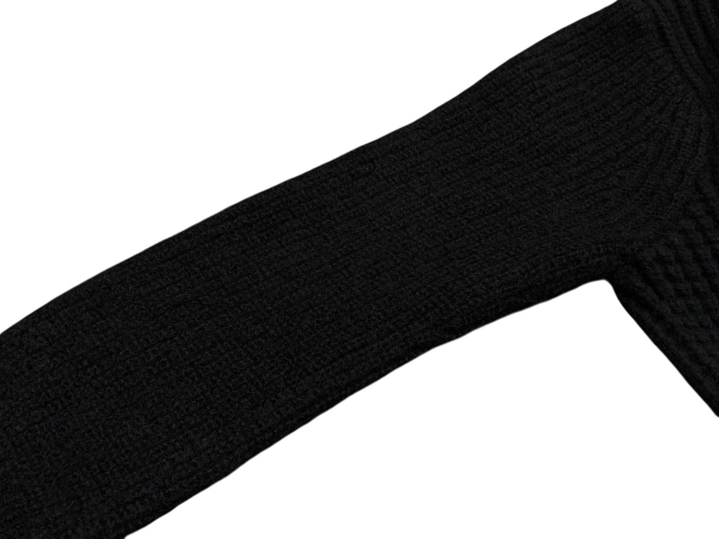 前面、背面、両袖でそれぞれ編み方が異なる個性的なアイテムです。