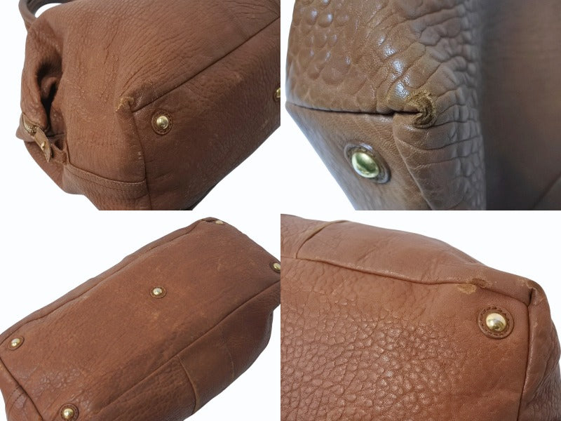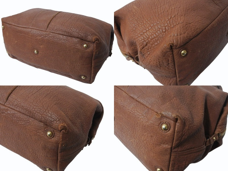 角スレあり。全対的に革の経年劣化あり。金具にスレ、小傷あり。ハンドルにコバ割れ、シミ、スレあり。内布に経年劣化による汚れあり。ハンドル根元に生地切れあり。内側のタグに色剥がれあり。その他目立つ汚れや傷が少なく中古品として使用いただけます。