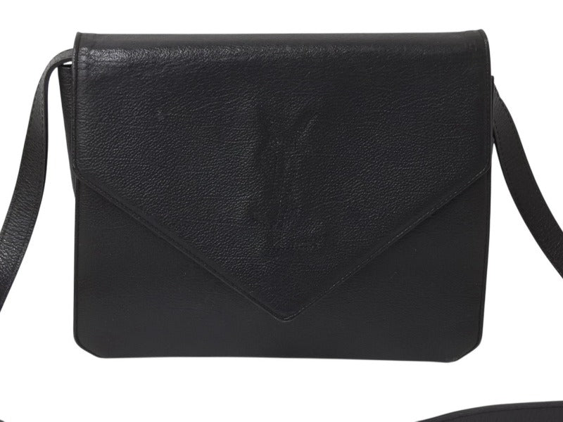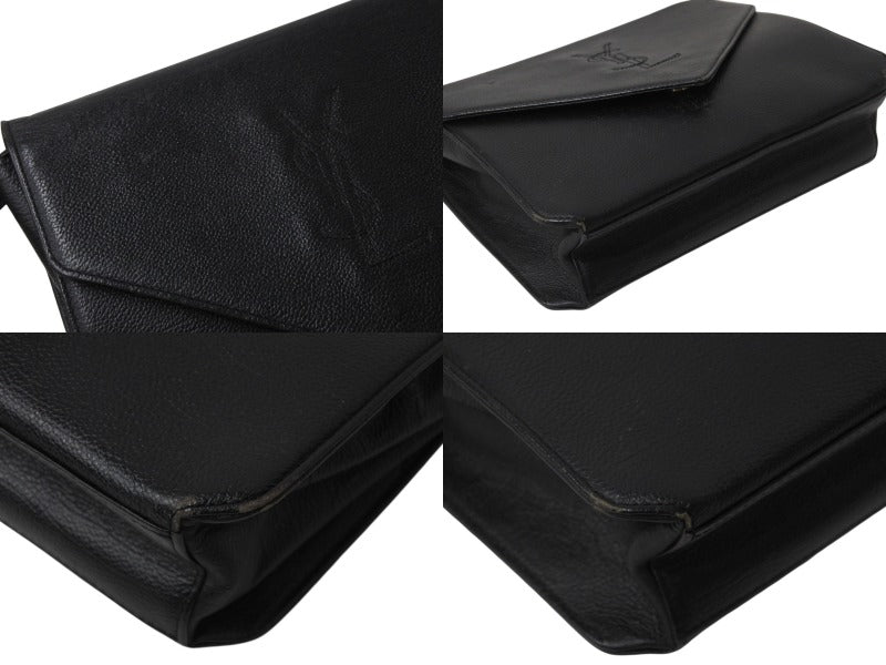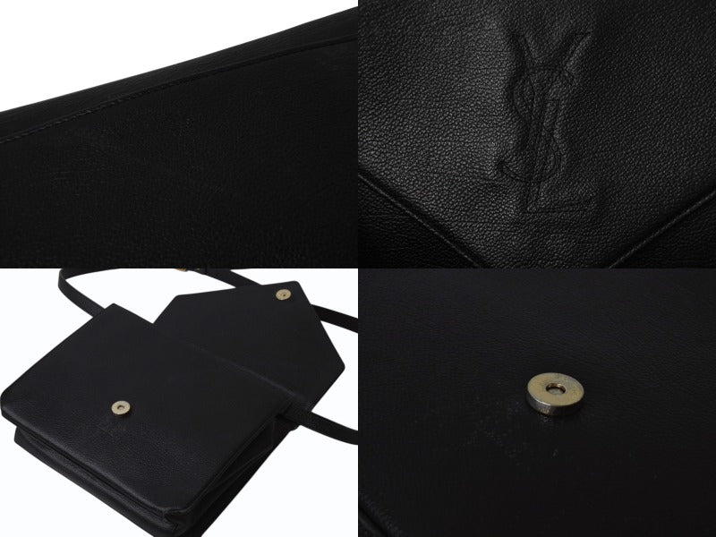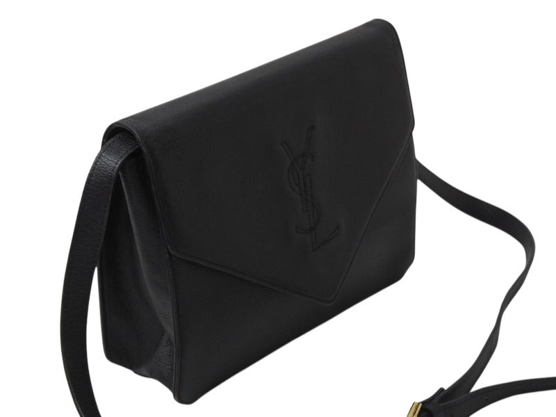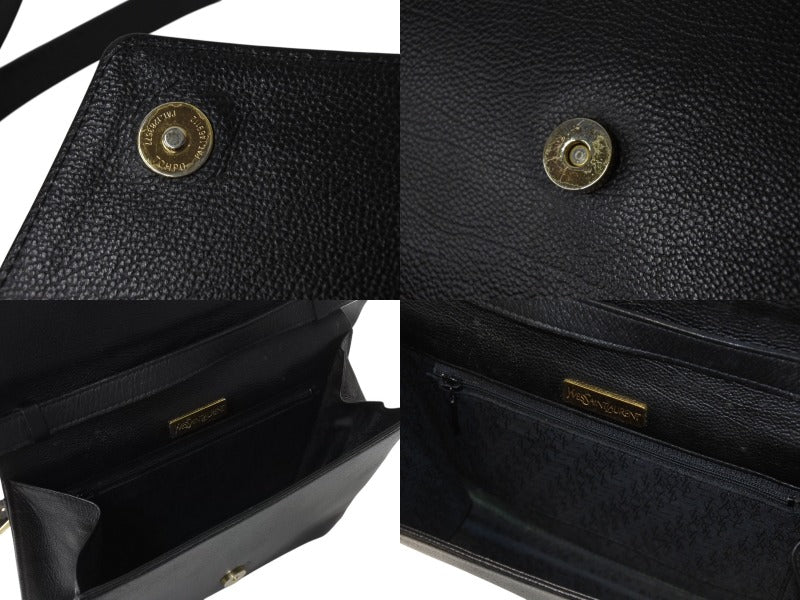 YVES SAINT LAURENT イヴサンローラン ショルダーバッグ YSL カサンドラロゴ レザー ブラック ゴールド金具 美品 中古 4b002852