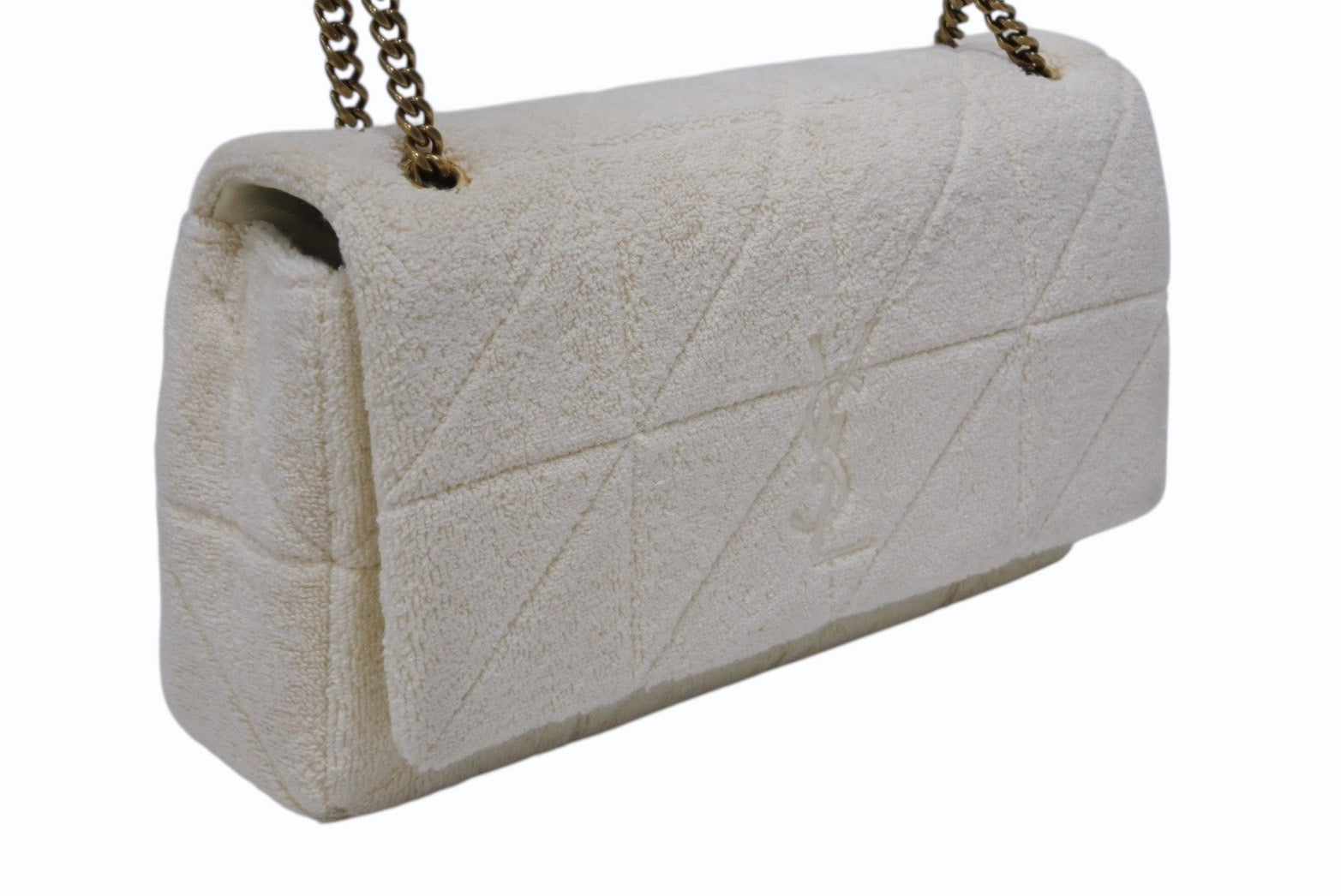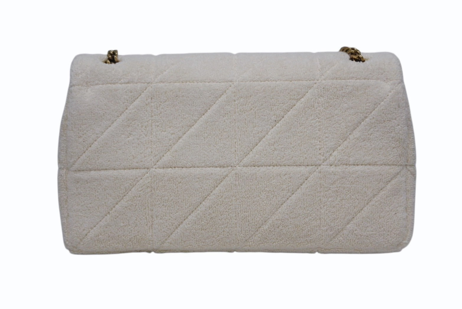 オフホワイトのテリークロスに幾何学模様のステッチを施したアイテムです。