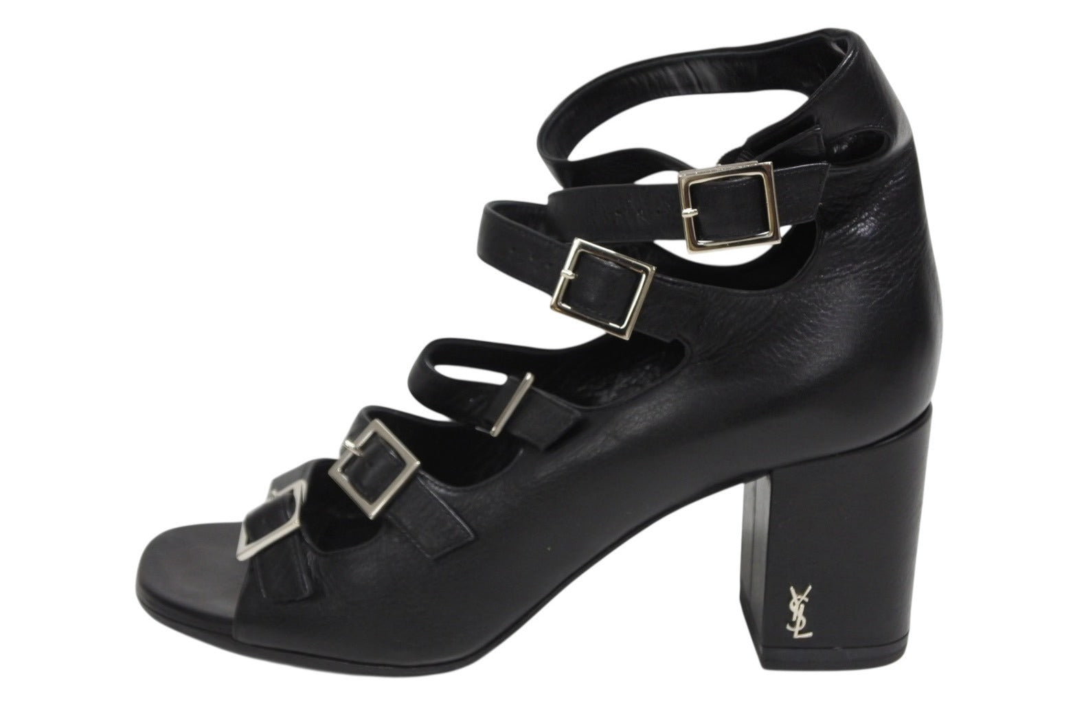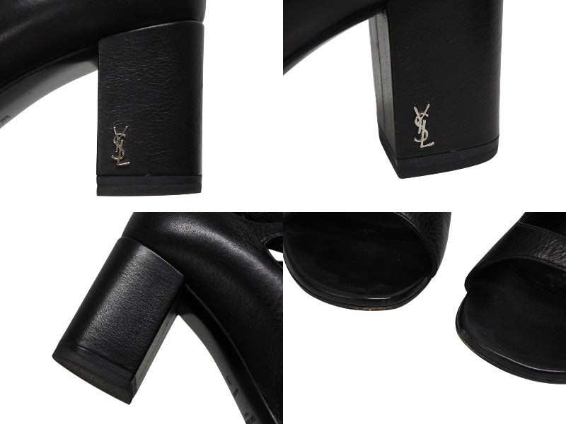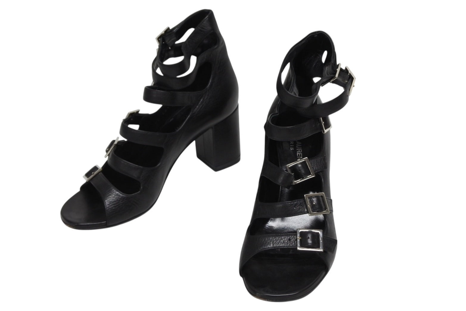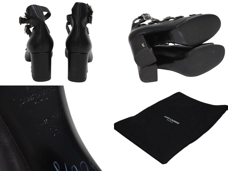 極美品 SAINT LAURENT サンローラン 6連ベルトサンダル ヒール チャンキーソール レザー ブラック シルバー金具 サイズ38 中古 4b009954