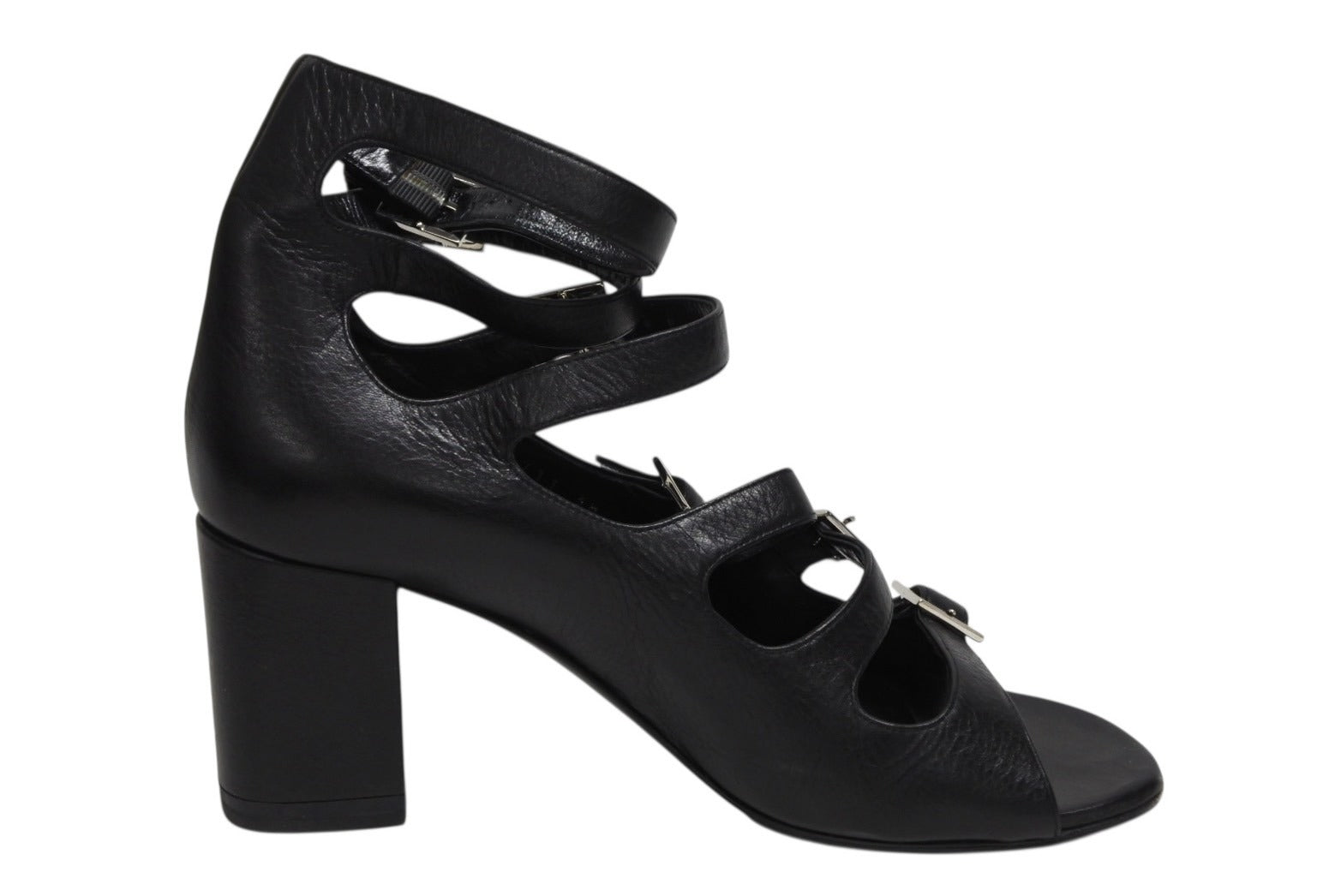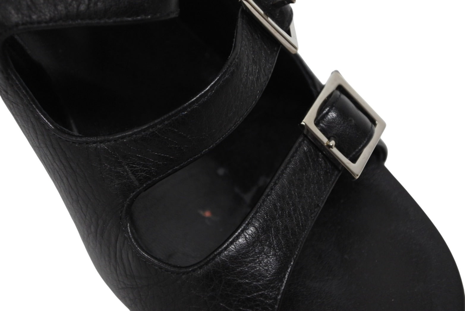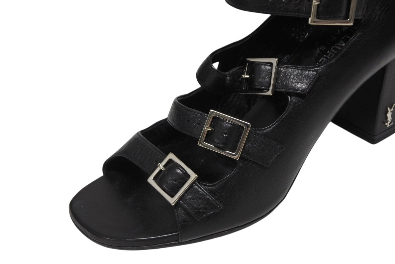 極美品 SAINT LAURENT サンローラン 6連ベルトサンダル ヒール チャンキーソール レザー ブラック シルバー金具 サイズ38 中古 4b009954