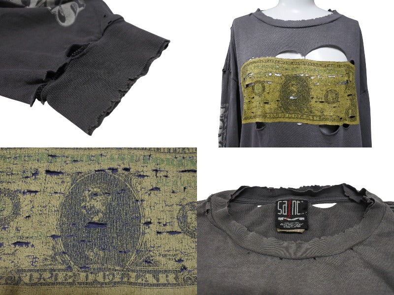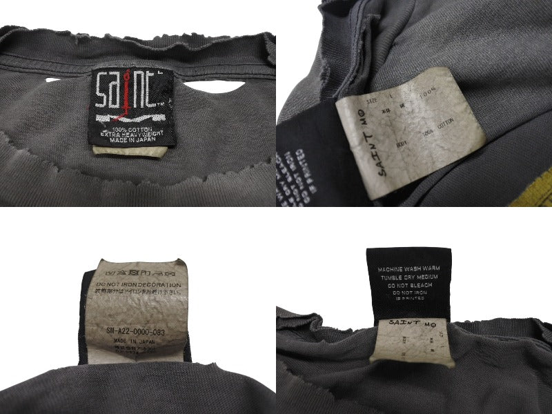 全体的に色あせあり。汚れ、シミあり。生地裂け、擦り切れ、ピンホールあり。首リブ擦り切れあり。プリントにかすれあり。中古品としてまだまだご使用いただけます。