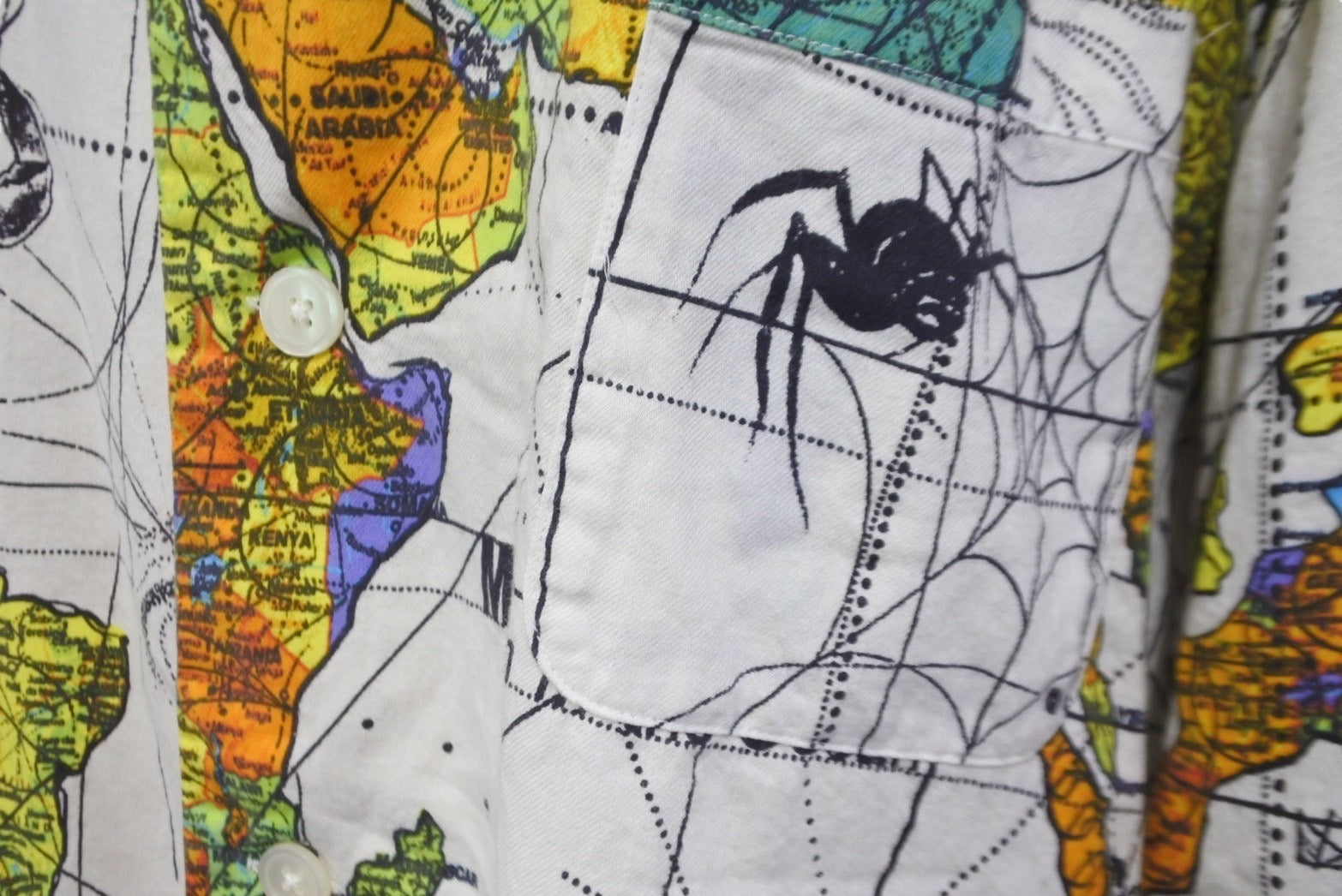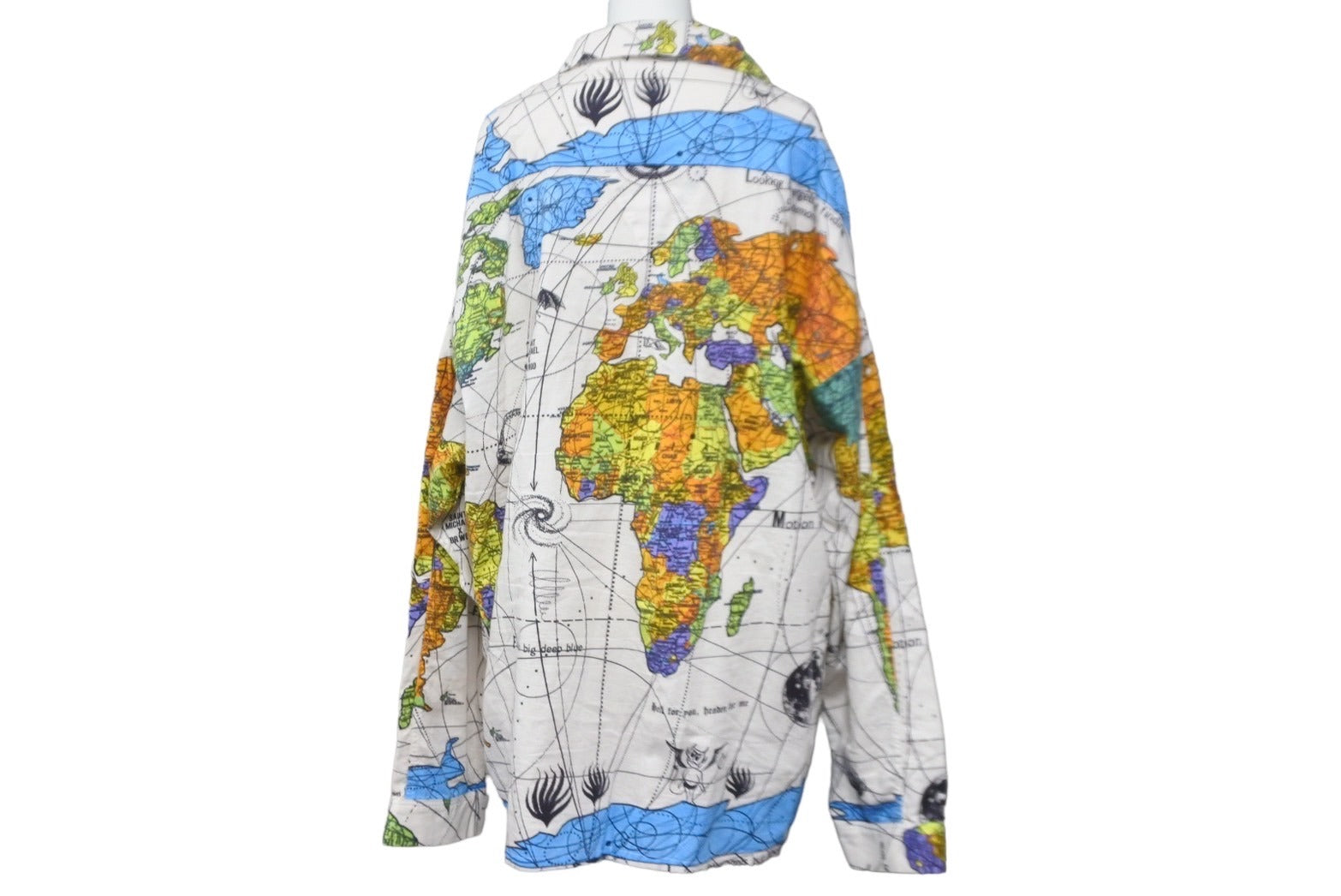 世界地図を全面にプリントした総柄仕様のパジャマシャツです。