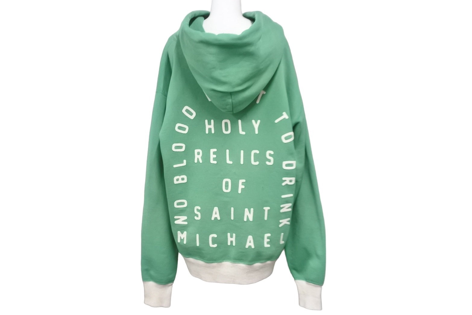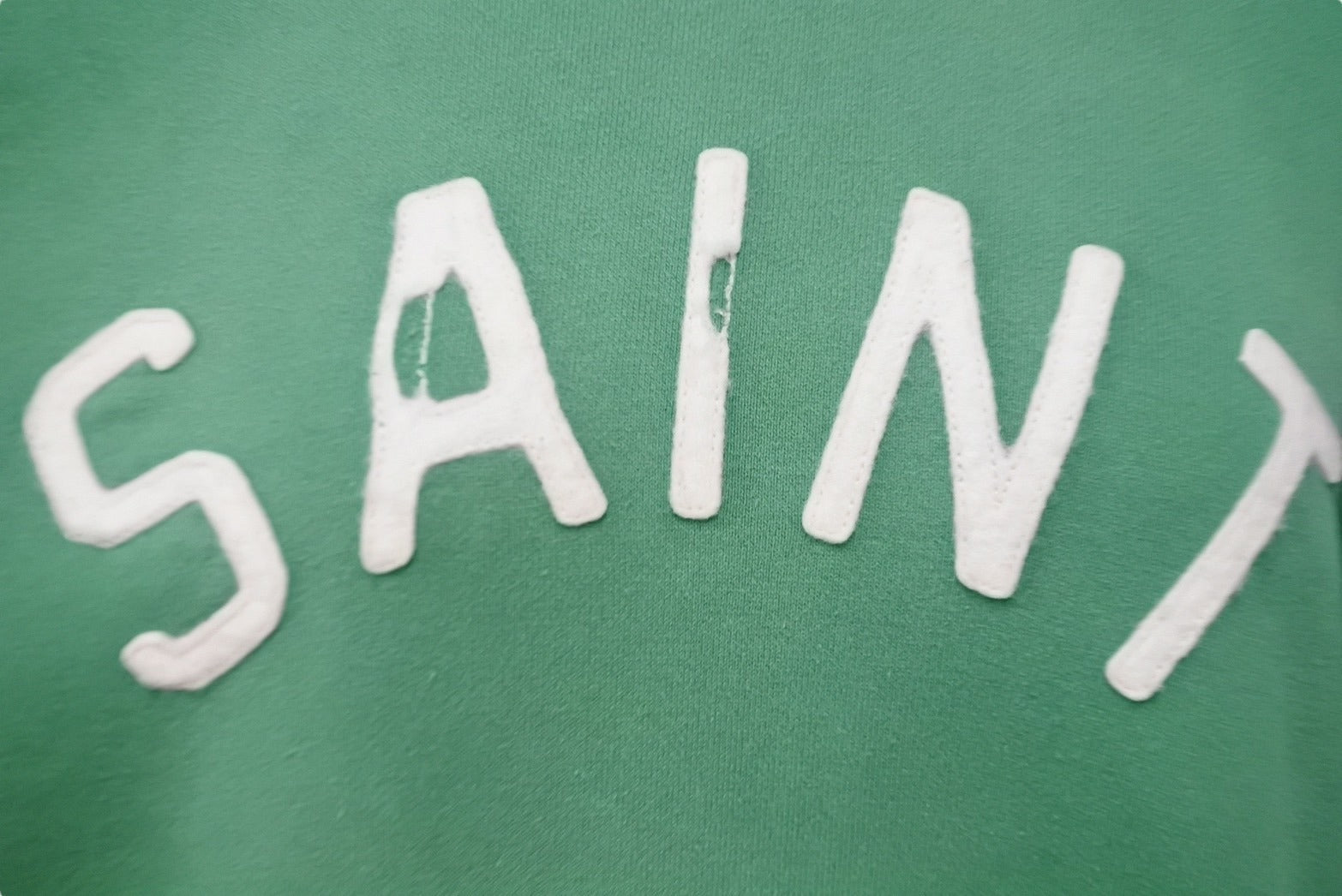 人気のあるホーリー レリックスのシリーズは、フロントの「SAINT」バックの「HOLY RELICS OF SAINT MICHAEL」「NO BLOOD LEFT TO DRINK」などの文字を昔プリント技術がなかった時代に装飾をフェルト地をカットして縫い付けられていたディテールを再現しています。