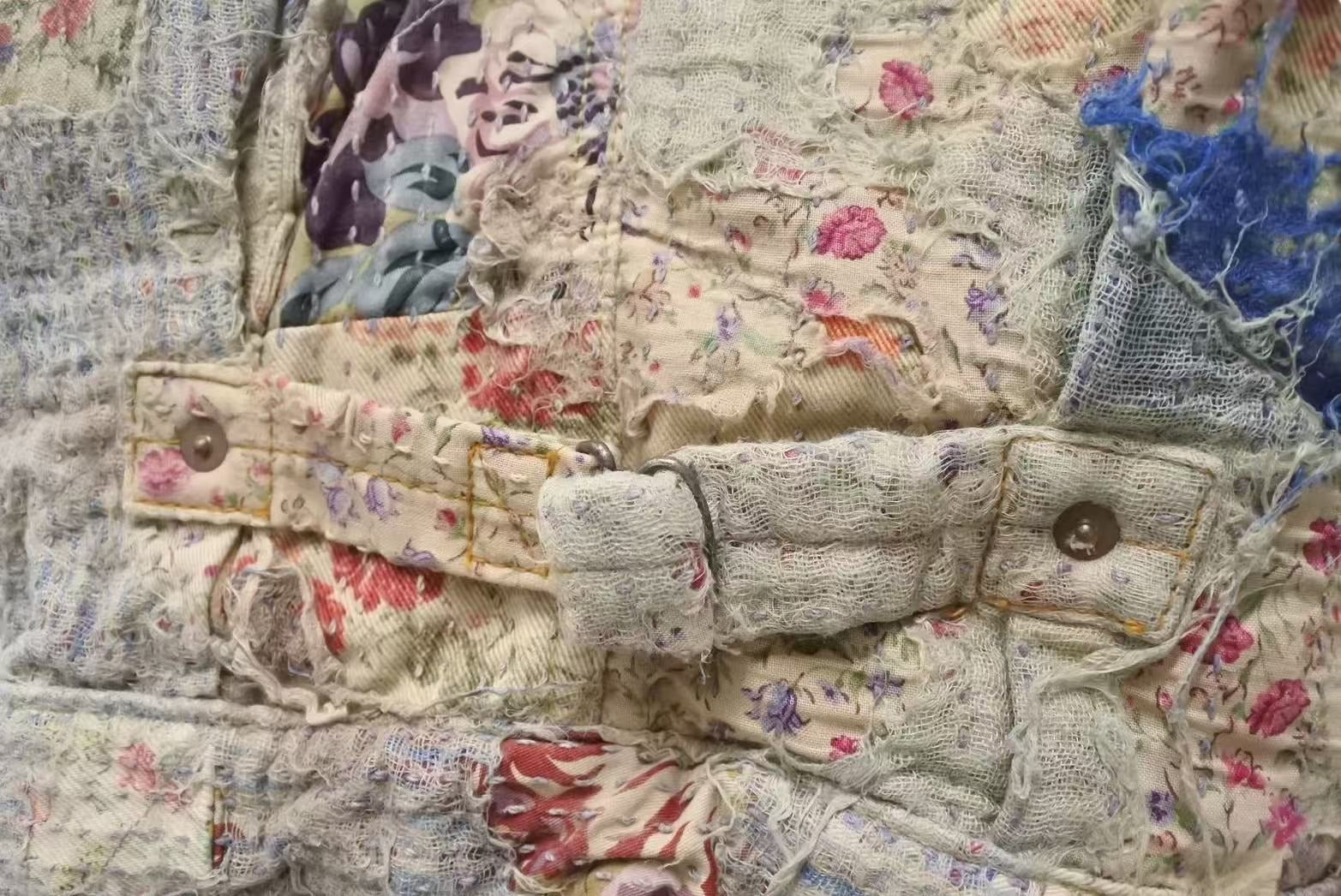 江戸時代、東北地方の過酷な冬の寒さから身を守るために、使い古した藍色の木綿布を寄せ集め、何枚も継ぎはぎ、刺し子を何層にも重ねて修繕を繰り返し使われたBORO。