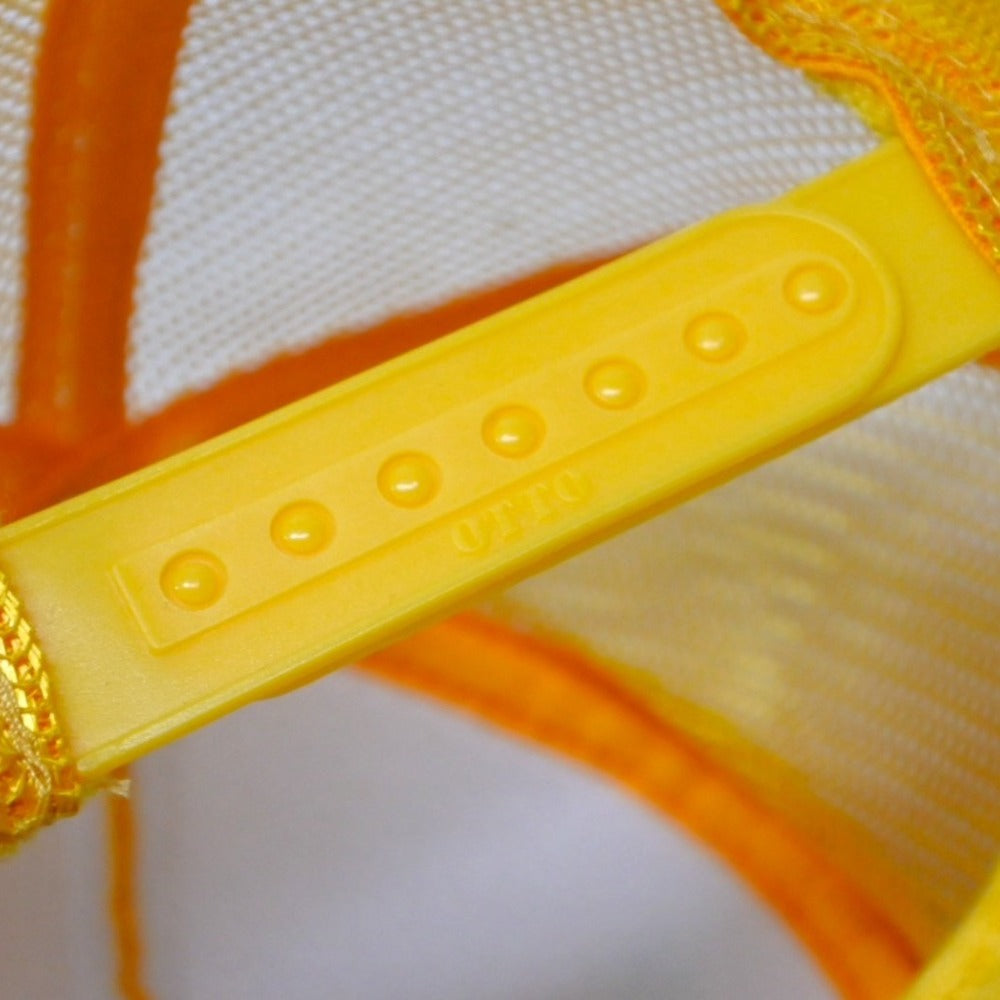 フロントに施されたパフプリントが可愛らしいメッシュ トラッカーキャップです。