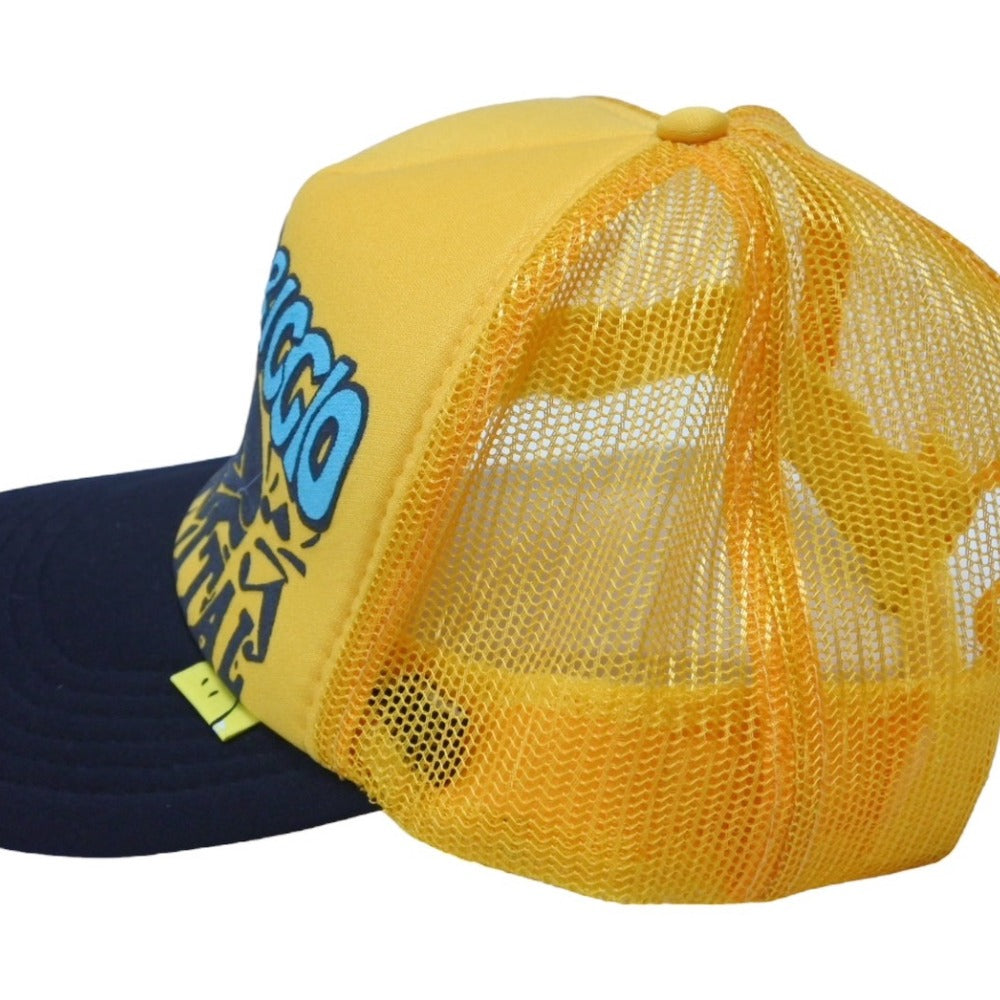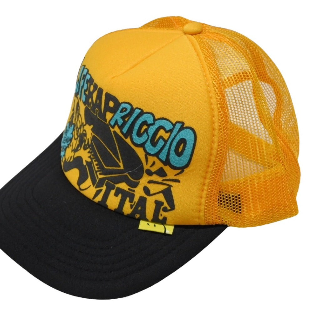 フロントに施されたパフプリントが可愛らしいメッシュ トラッカーキャップです。