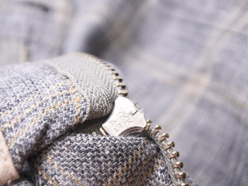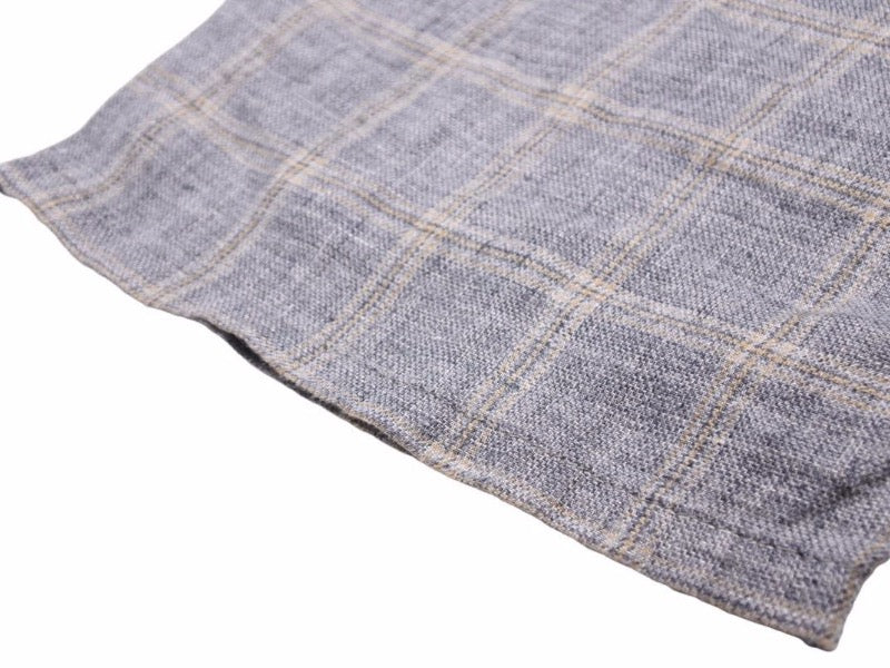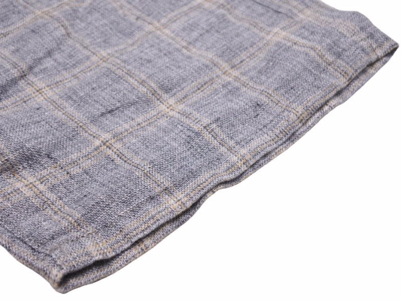 リネン素材の落ち着いたカラーのチェックアイテムです。